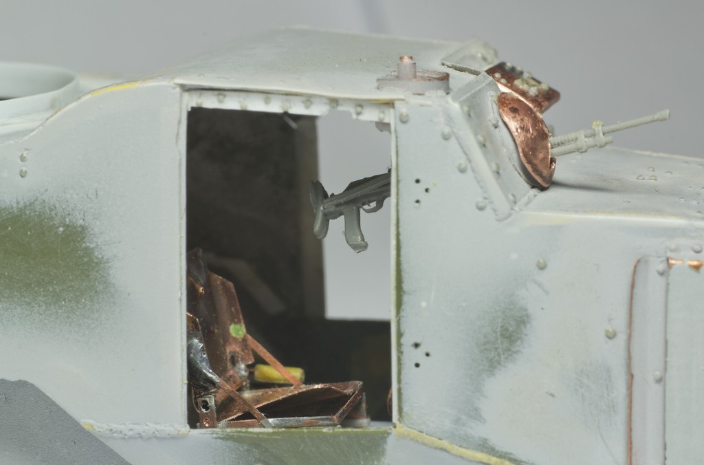 Поизгалялся над внутренностями. Делаю все утрировано и упрощенно, ибо видно почти ничего не будет, поэтому более-менее детально прорабатываю детали возде дверей и люков. В принципе осталось доработать переднюю часть - внутреннюю часть дверей, шаровой курсового пулемета, люка водителя, приборную панель, немного элементов проводки.