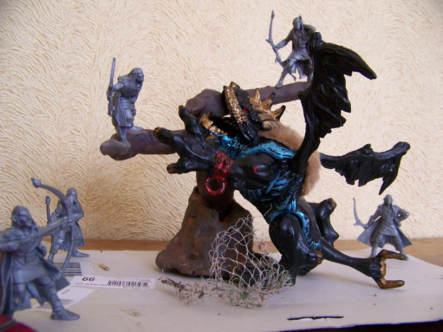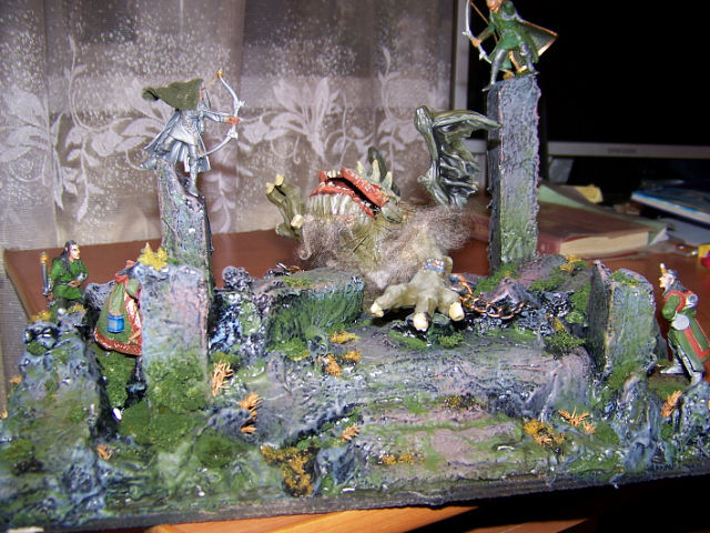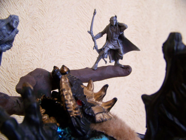 Всем доброго времени суток! Возникла идея создания виньетки с фэнтезийной тематикой. Дети добровольно пожертвовали старой игрушкой - монстриком, которого они прозвали Зозулей. Из-под кровати был извлечен набор от "Технолога" "Эльфы". Появился замысел свести в схватке этих запылившихся товарищей в лесной чаще. Зозуля (он же незванный гость) по замыслу пытается достать с дерева одного из "остроухих" - лесные братья готовяться дать отпор. Для обрисовки идеи пока использовано пластилиновое безобразие. Когда сойдёт снег, сходим в ближайший лесок за коряжкой, всякими веточками, корешками и т.д. и соорудим поле боя. А пока займемся конверсией фигурок и покраской.