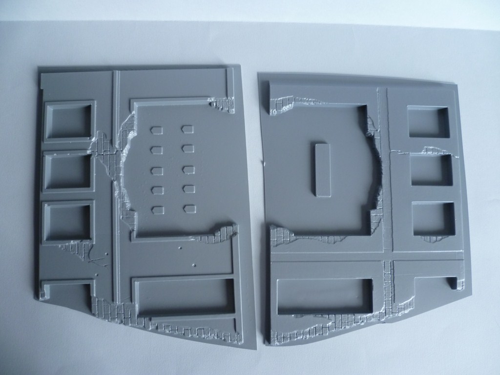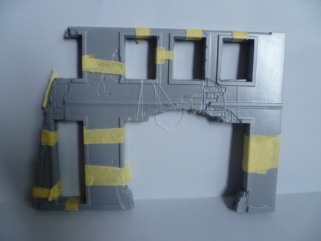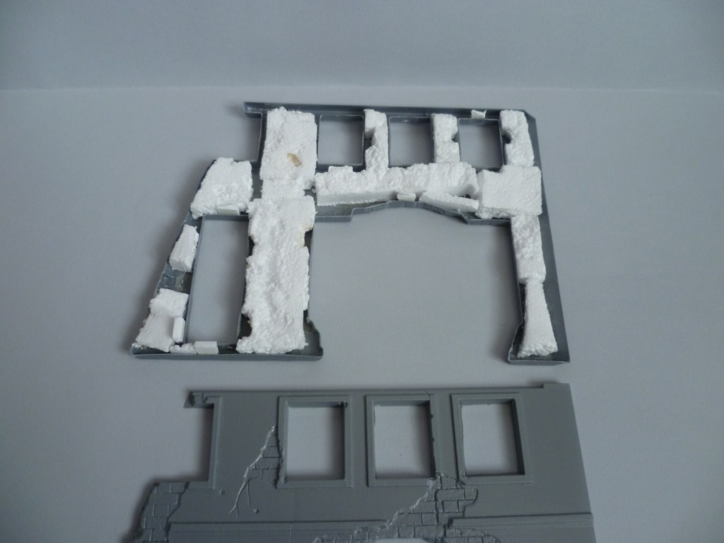 Вообще при сборке зданий не получается без шпаклевки ну никак. Конструкция отливок странная - много пластика на краях что неимоверно бесит. Вариант с пенопластом нужно четко просчитать, иначе при склейки могут получиться лишние миллиметры ширины.