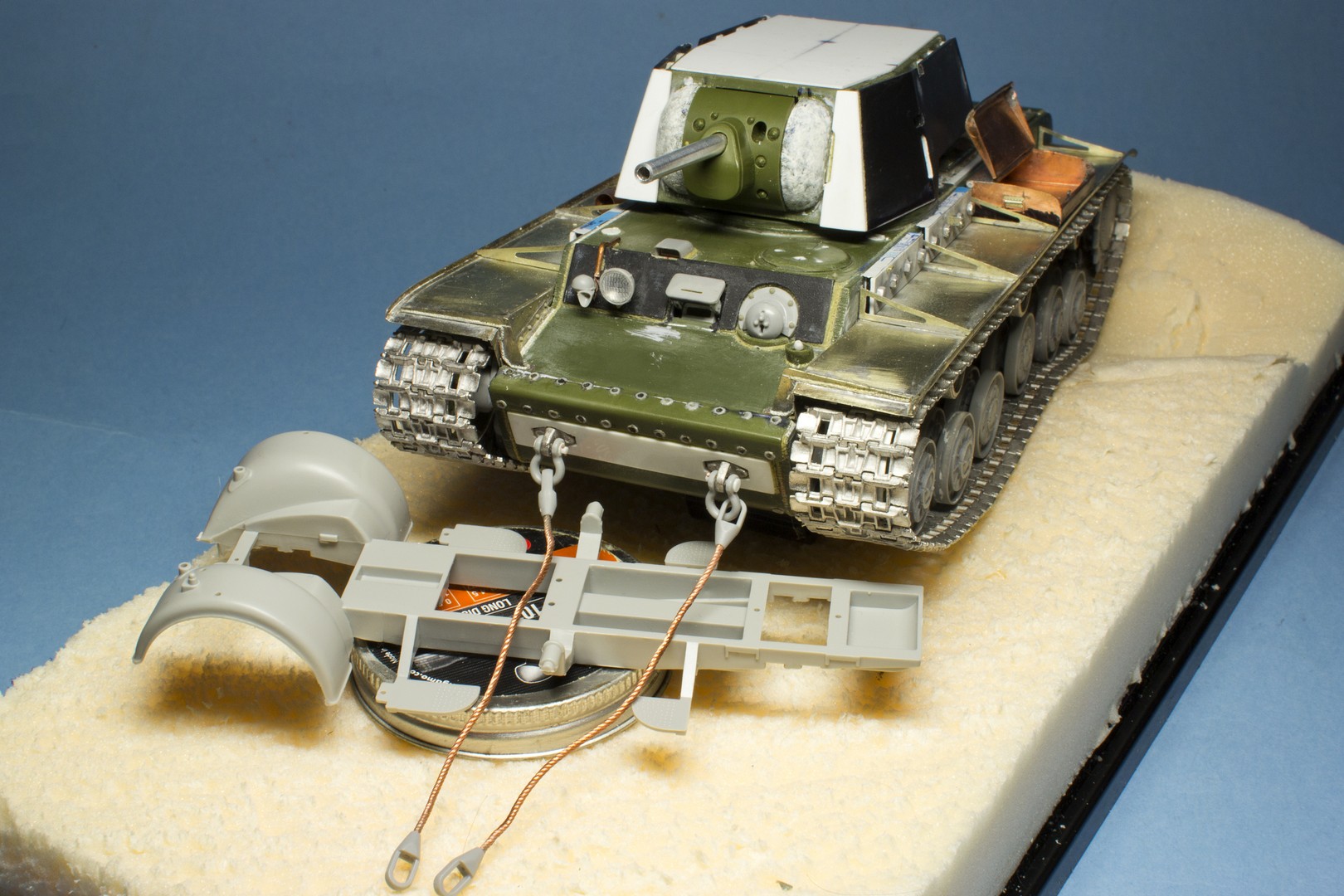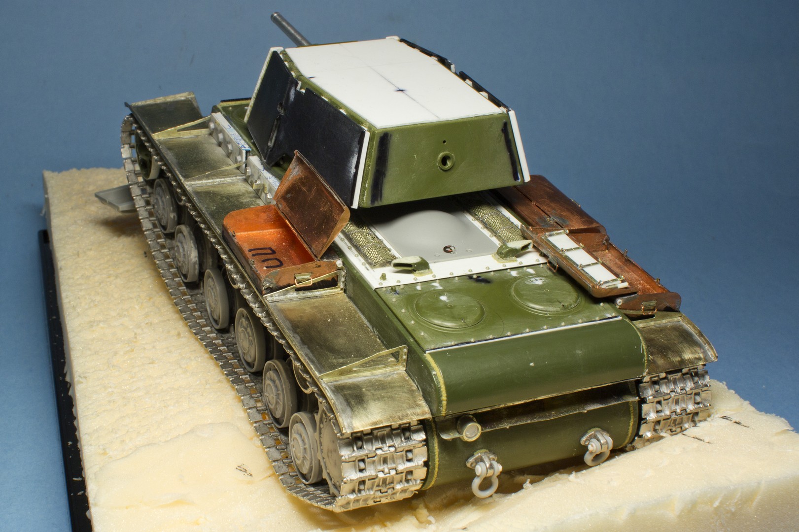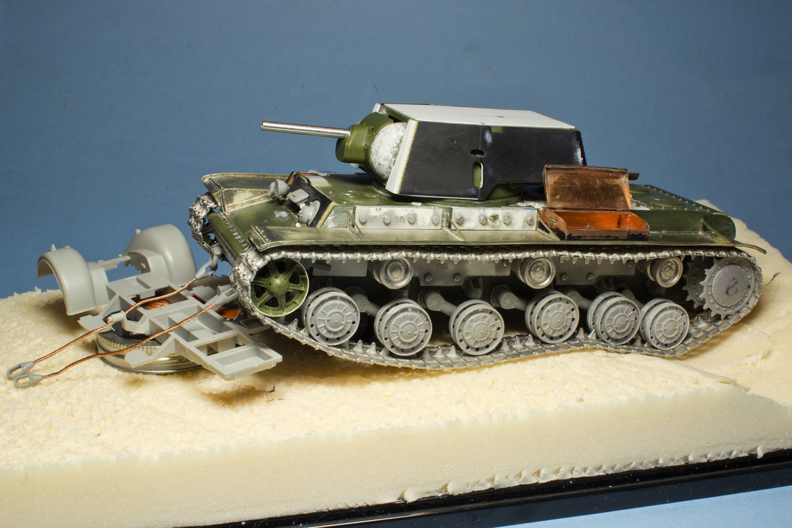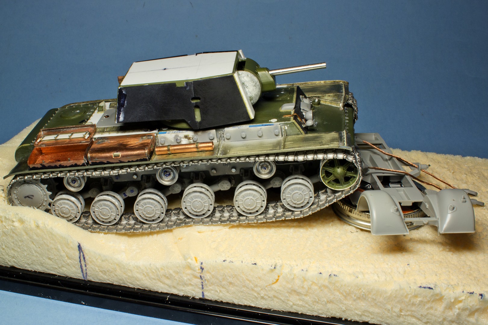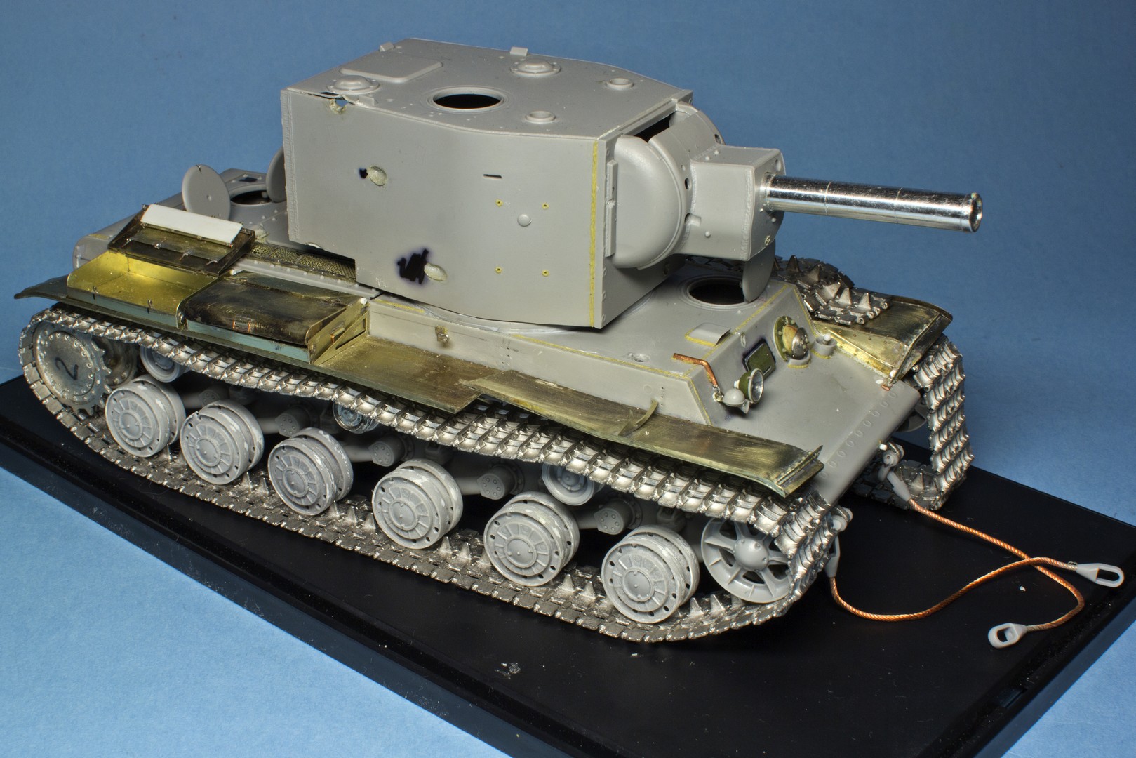 КВ-2 Корпус также практически завершен. Провозился с разрушенными катками -долго не мог понять, что там сломалось (не уверен, что и сейчас понимаю)