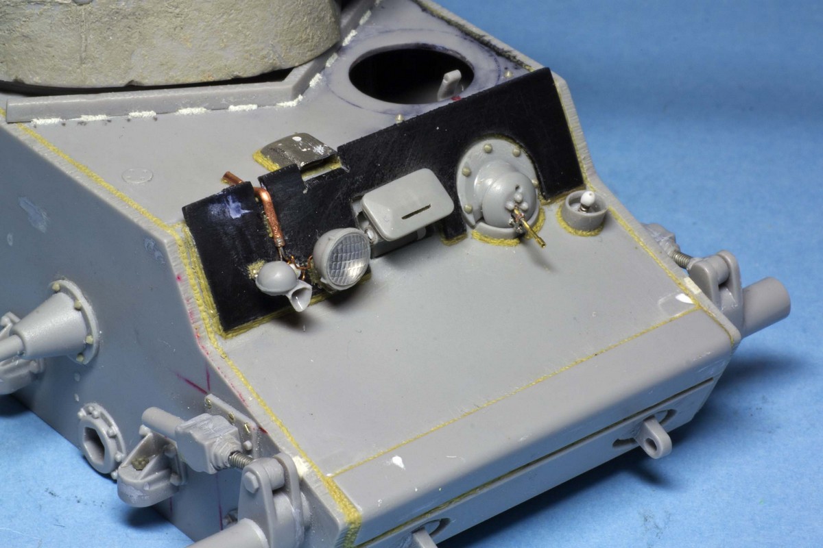 КВ-1Э. Работы по корпусу практически завершены. Теперь предстоит башня. Так как прототип стоит не на ровной поверхности, то сразу сделал заготовку подставки и закрепил балансиры в "правильных" позициях.