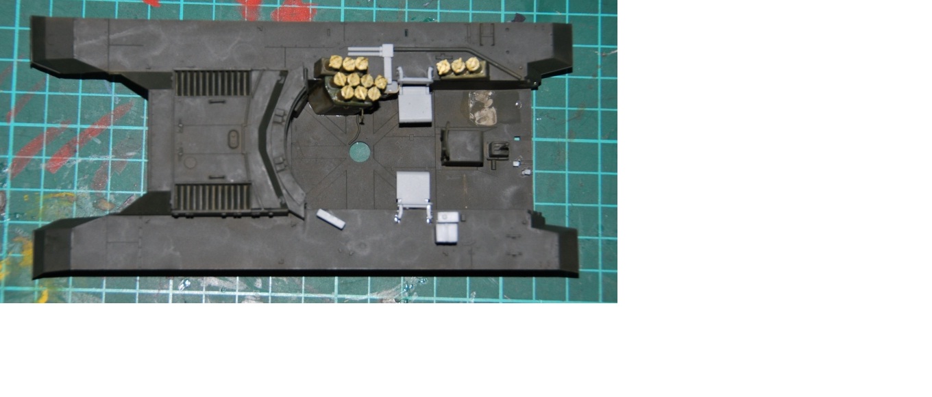 Наводчик по имени Бобби Браун (уроженец Глазго, хороший художник) прильнул к окулярам, на крыше рубки сложенна "брезентовая" крыша (сделанная из проклеенной салфетки)