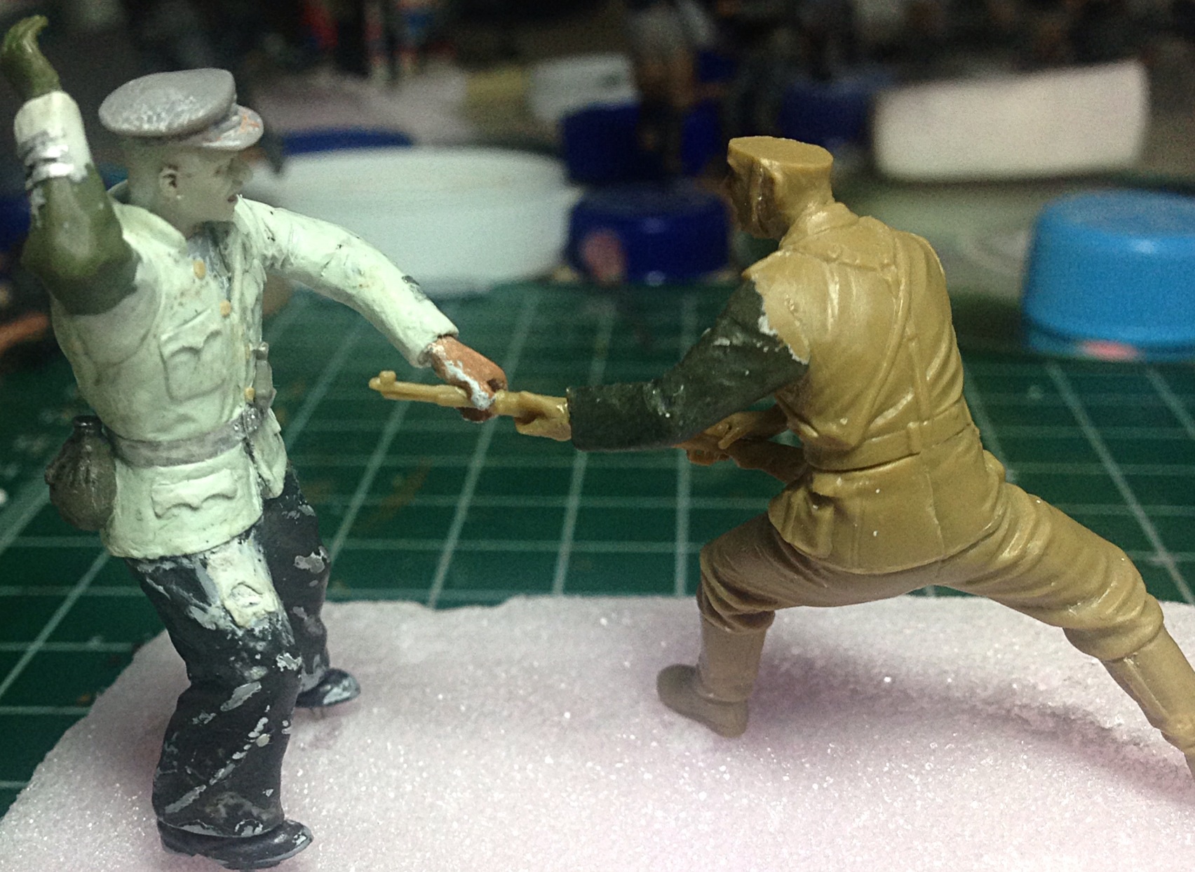 Еще один новый-старый боец. Я его выставлял уже в галерее. Почему новый- добавил ему сумку, "порвал" форменку сзади. Добавлю потом мелочовку ему на пояс. Ждет финальной покраски