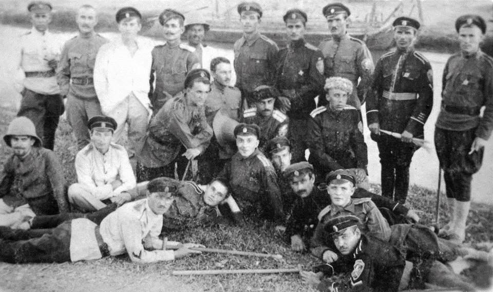 Фотографий тех боёв мне найти не удалось, что неудивительно - вероятно им не до того было, но приведу несколько снимков самой первой поры эмиграции. Очевидно, примерно так они и выглядели в период операции в Северной Таврии. Особенно мне глянутся бойцы на втором фото в пером ряду!