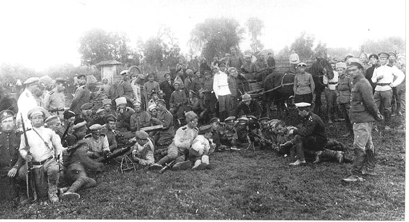 Или вот ещё одна "цветная" часть - марковцы. Как видите и здесь в лучшем случае присутсвуют свои полковые погоны. Цветных фуражек почти нет. А уж красивой цветной "марковской" формы (в которой их вслед за иллюстрациями из "Цейхгауза" №1 все любят рисовать), и подавно.