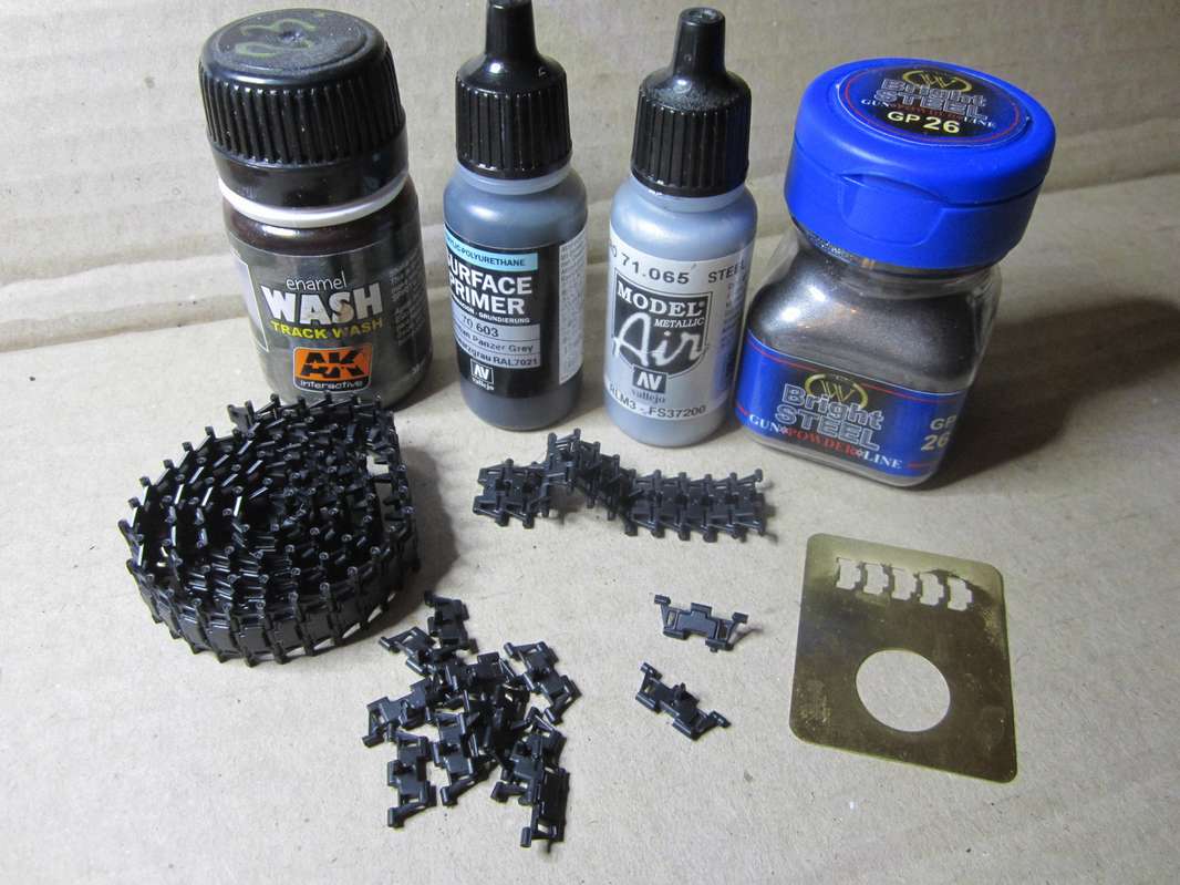 Затем смывка для траков, покрасть резиновые подушки, они оказались с двух сторон трака что видно на фотографии.