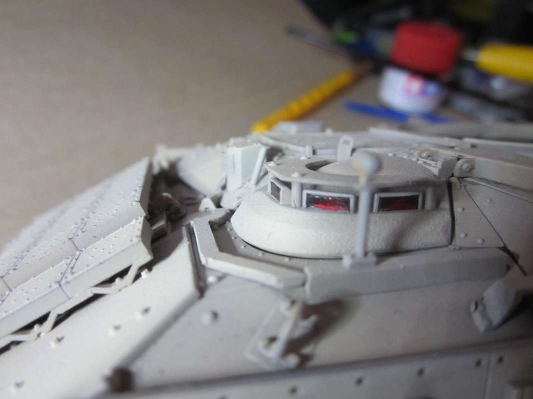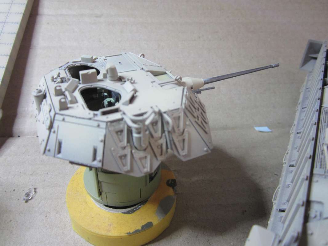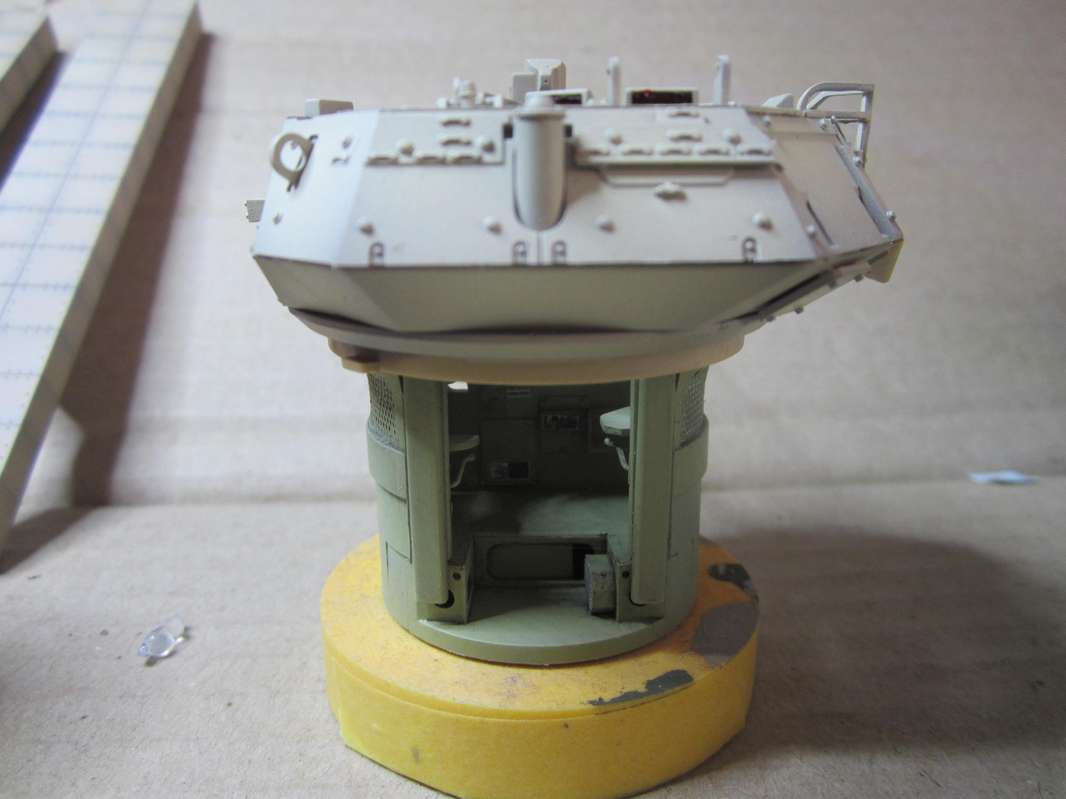 собрана частично башня со всей требухой. При установки крашенных перископов очень тугие посадочные мест под них, можно повредить покраску фасадного стекла.