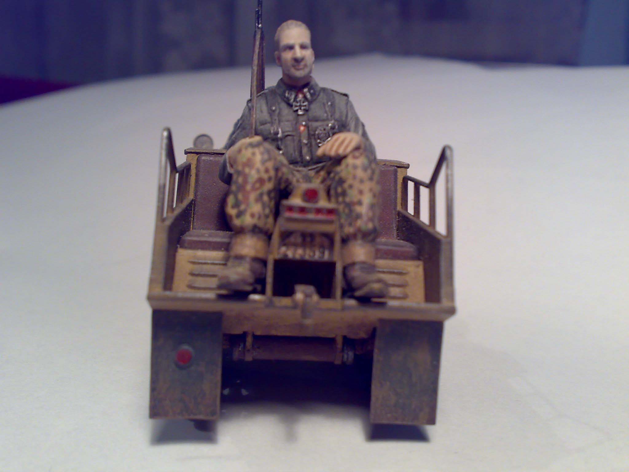 На самом Kettenkraftrad такие доработки: колесо отделено от крыла, доработано крыло, заново изготовлен номерной знак (передний), сетка позади водителя заменила ее имитацию, уменьшил толщину брызговиков и предал им слегка изогнутую форму. «Пассажир» собран из 2-х фигурок ICM.