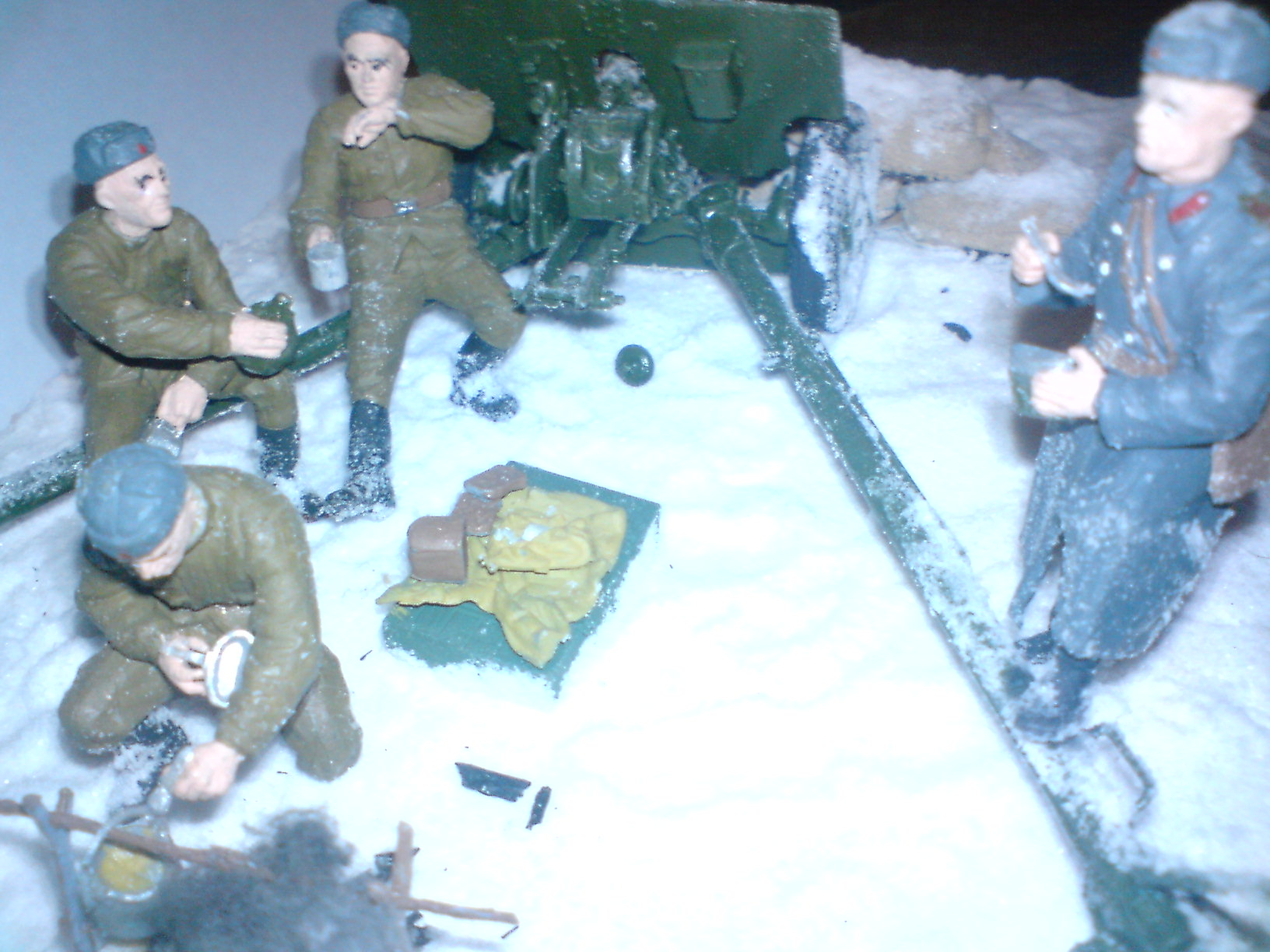 Смотрелось бы лучше если снег был бы утоптан на позиции, следы всякой возни... И мешки действительно не к месту( не понятно от кого и чего они смогут защитить). А в целом нормально сделано, хороший сюжет. С уважением Михаил