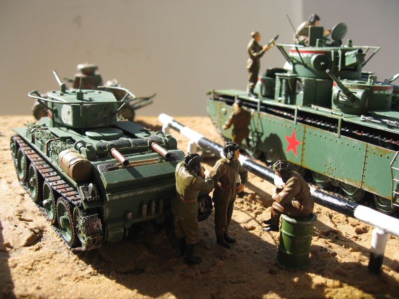 Приступая к работе над данной диорамой крайне желательно было ознакомится с содержанием как минимум 4 источников - Фронтовая иллюстрация "Многобашенные танки РККА", Армада "Танки БТ", "Первые советские танки", сайт по униформа, приведенный выше. Четко определиться по следующим моментам