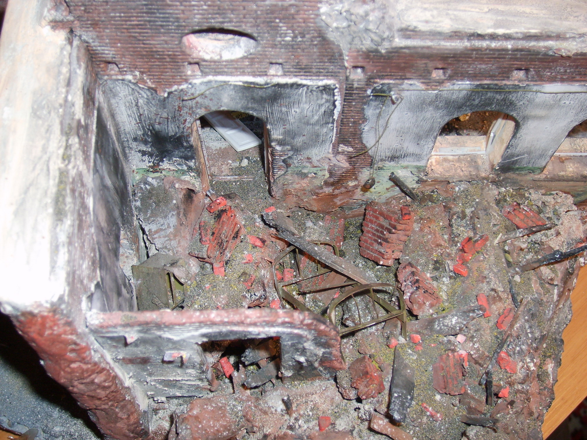 Решил выставить на обсуждение мою первую пробу по созданию диорамы. Руины здания от "МиниАрта", остальное самодельное. К сожалению перепобовав кучу вариантов, не смог придумать сюжет. Может кто чего подскажет?