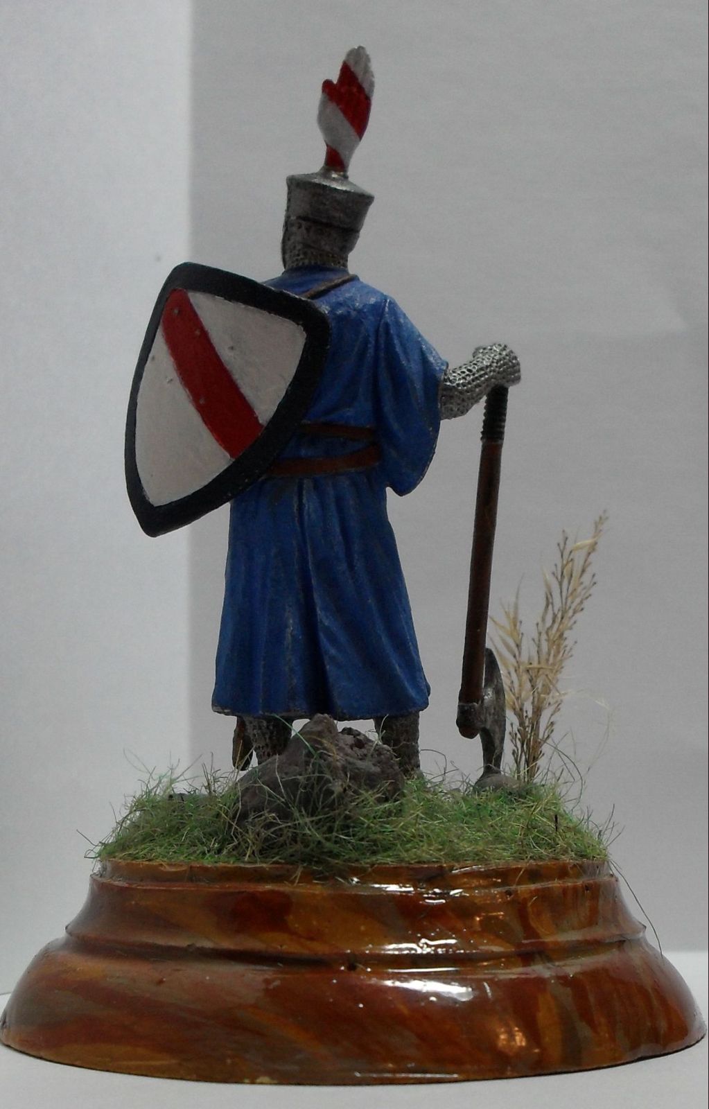 Фигурка -белый металл производитель E.K.Castings.Окрашена акриловыми красками фирмы "звезда".Трава из пакли ,куст из природного материала,камни-кирпич,подставка из гипса и окрашена тоже акрилом,а потом покрыта лаком.За достоверность одеяния не ручаюсь,но всё что нашёл применил в покраске.Это моя первая работа.Критиковать можно и нужно!