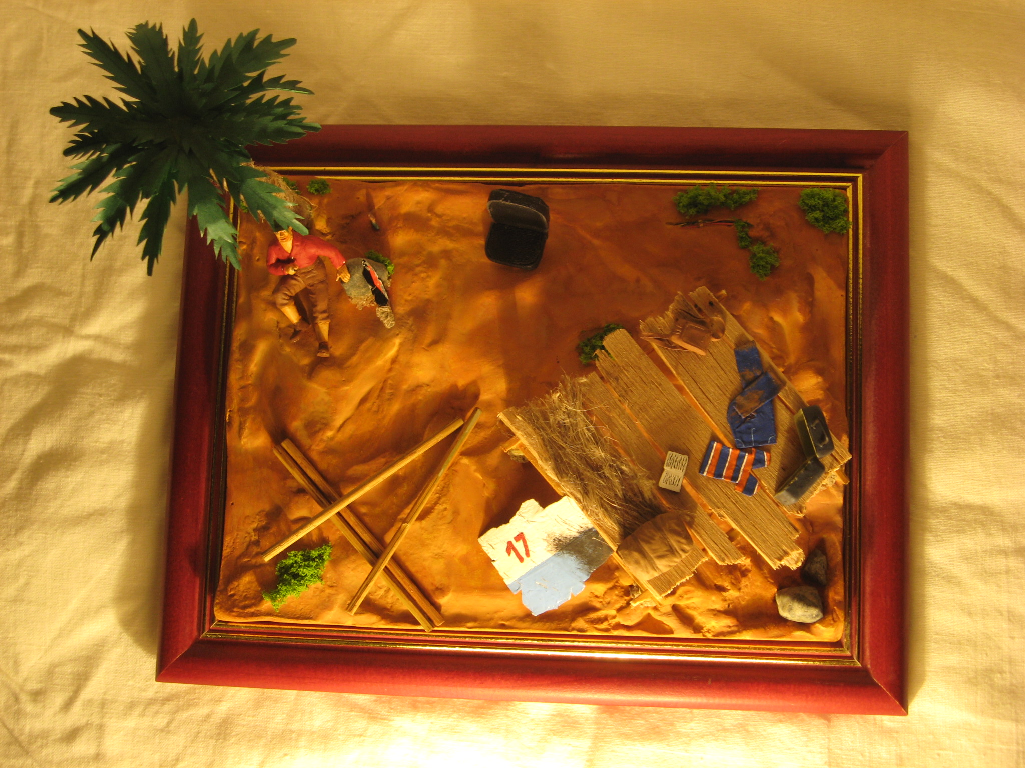 lfynt, мой вам совет как доработать диорамку! Возмите клей пва намажте на основание и сверху присыпте песком "мелким" а челдофона советую тонировочки добавить и будет норм... даж оч...