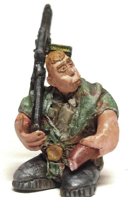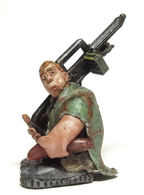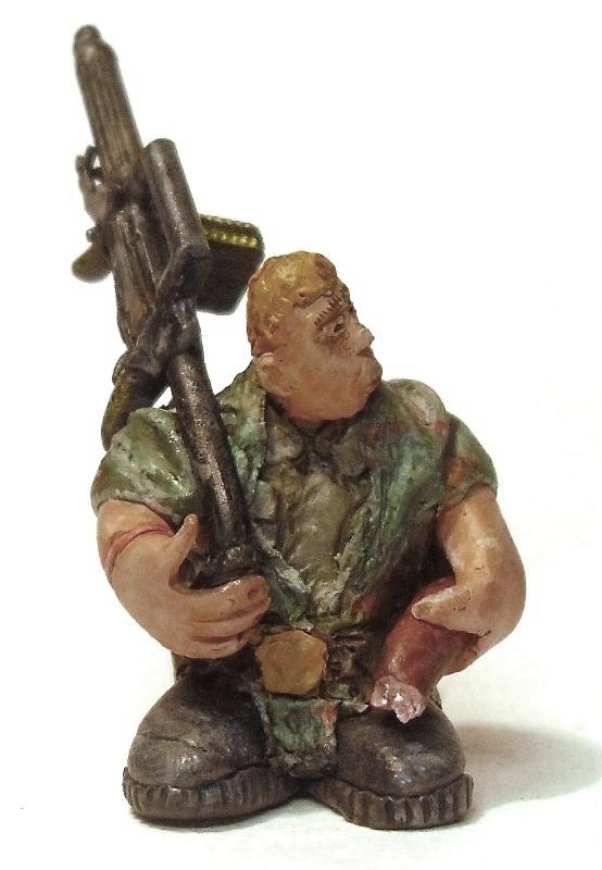 Камуфляжная накидка сделана в подземельях, за основу рисунка взяты лишайник Parmelia Saxatil и мох Andreaea rupestris. Вооружен подземной модификацией сами видите чего (от "Звезды"). Возможно, будет ещё подставка, а может так оставлю: отдам детям, пусть играются.