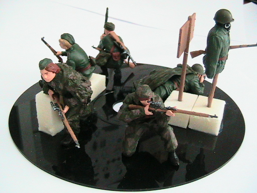 Вот еще раз посмотрел - было бы лучще смести всю эту пехоту и танки а вместо них во дворе медсестер и раненных солдат. Была бы нормальная диорама фронтового госпиталя - а так вышло "кино и немцы"