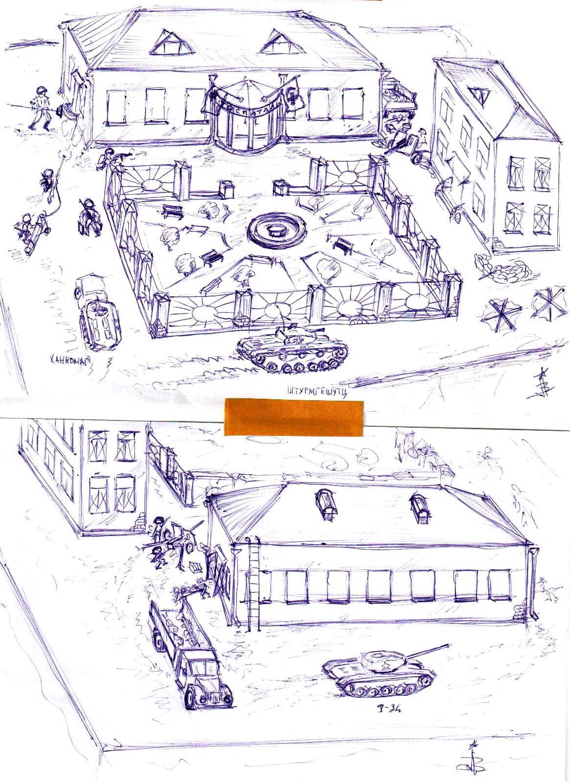 александр бизин, мне кажется вы слишком рано замахнулись на такой объем работы, вы представьте размеры этой диорамы-реально прикинув по масштабу и технике, да еще и зданий, сколько это. 1.5м*2м и то мало наверное, учитывая размер среднего танка от 15 до 20 см в 35 масштабе, а он там не один, да и здания еще которые в два, а то и в три раза больше техники. Если у вас нет опыта по постройке такого вида диорам и судя по окраске фигурок - уровень "учебка"... я бы на вашем месте постеснялся браться за такого рода работы и оттачивал бы основные техники по созданию миниатюры по разным направления в отдельности, потому что вы потратите много сил, времени и терпения, а результат будет плачевный.