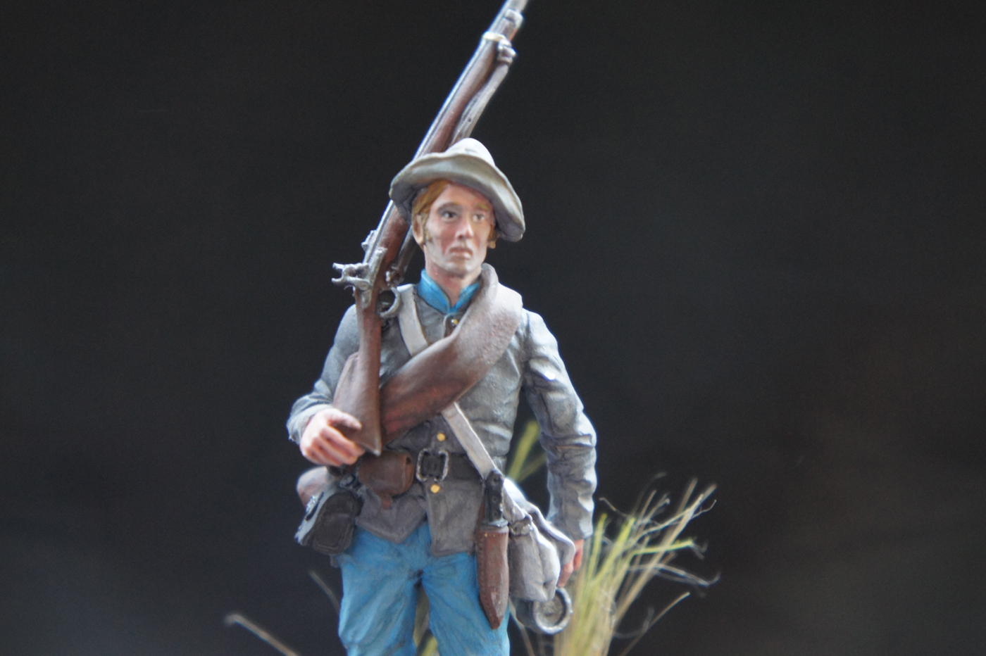 Представляю вашему вниманию фигурку солдата армии конфедерации, производитель EK Kastings Основание - гипс, растительность - сантехлен, окрашивалось темперой.