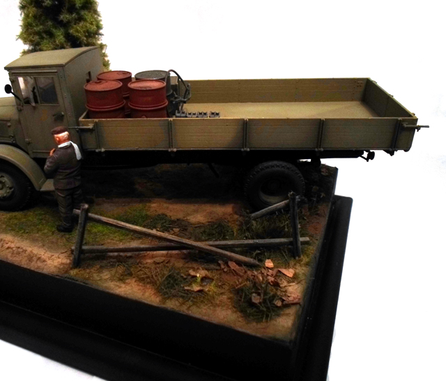 Грузовичок и мужичок, я так понял, с другой диорамы переехали? А по елочке не все понятно. Издалека вроде гуд. А вблизи? Разветвленности лап характерной не будет.