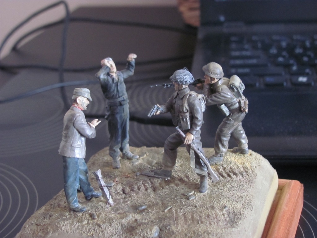 Насчет пустого места, думал об этом, показалось так будет атмосфернее, вроде как больше внимания уделяется самой ситуации, что ли. Не хотелось перегружать всякими касками, собачками и прочими моделистскими фенечками)) Эксперементирую, вот.