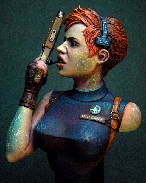 Попытка передать кибернетическую составляющую пилота будущего.Работа сделана кистью и акрилом.