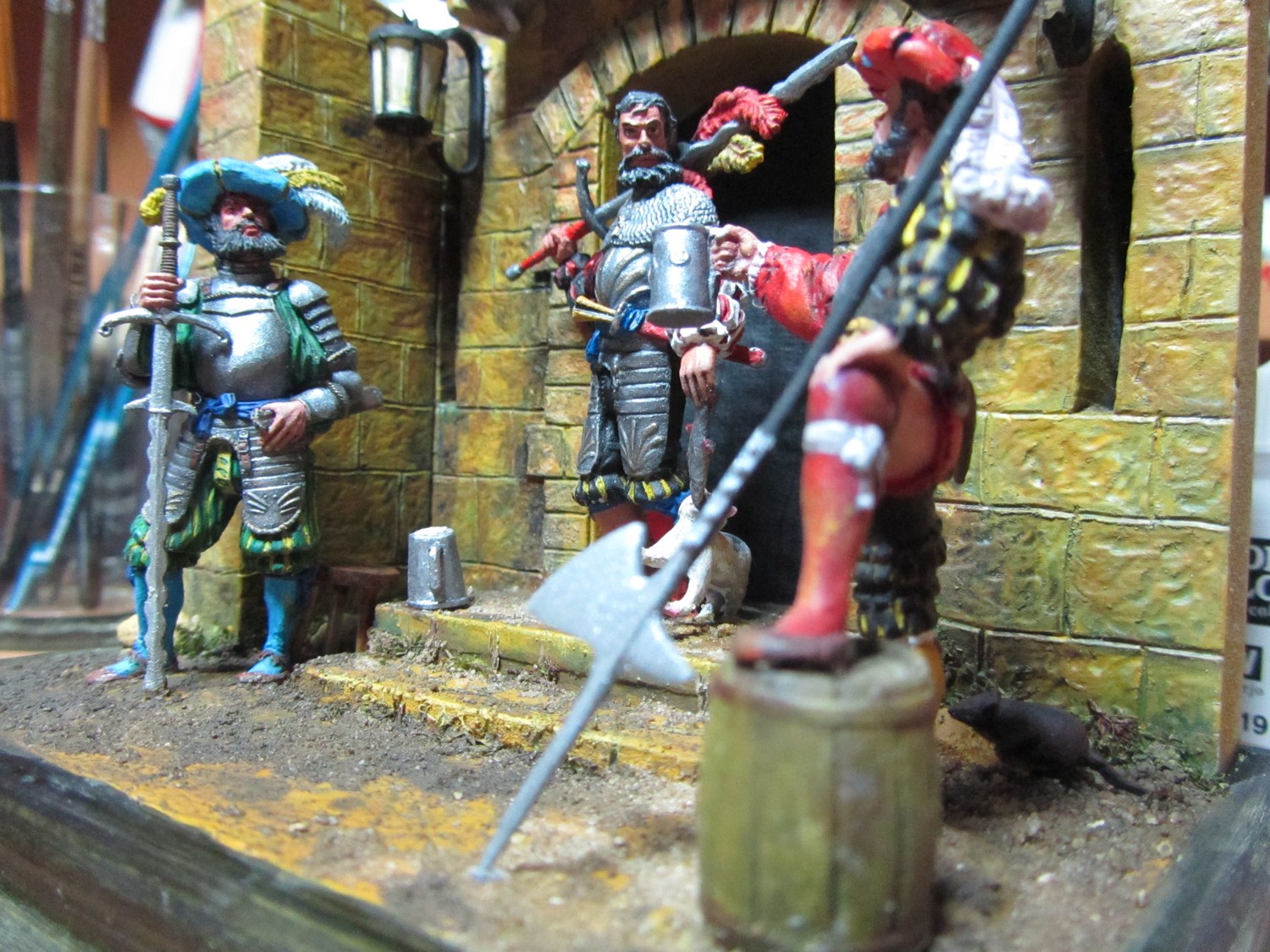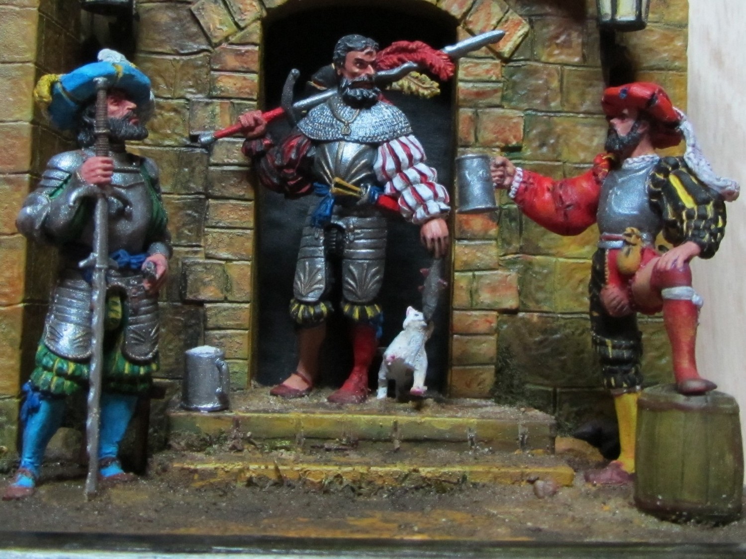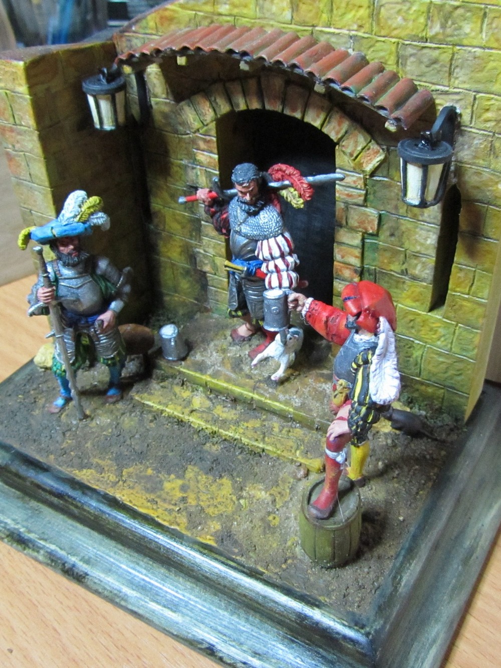 Начал пытаться расписывать фигурки в августе этого года. Воины-два от ЕК,с бочкой-производителя не знаю. Акрил,здание из мдф,черепица медь. песок ,мох,дерево,бумага.Буду рад любым критическим замечаниям. Сижу в окопе