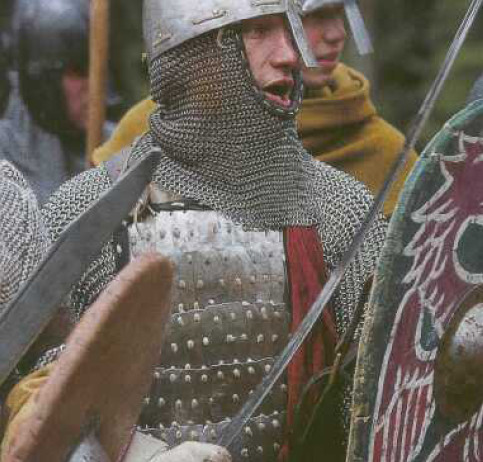 - ламелляр. Тот, что найден в Бирке, был расположен в поселении гостей с Востока, а не местных. Форма его пластин отличается от изображенного у Вас - нечто навразумительное с двумя клепками. Если окинуть взором все пластины ламелляров 6 - 13 века не будет ни одной аналогии изображенного. Клепаная броня, это 14 век. Так что ваш доспех полнейшая отсебятина независимо от того пользовались скандинавы ламеллярами или нет.