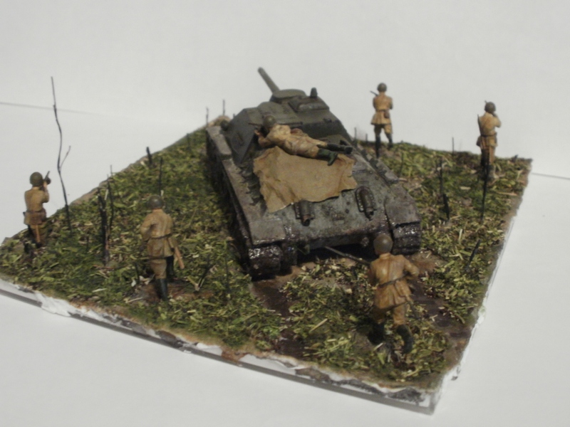 в процессе использовалась модель сушки от "моделиста" и фигурки из набора "советский пехотный взвод" от "звезды" масштаб 1\72, основа-крышка от CD.