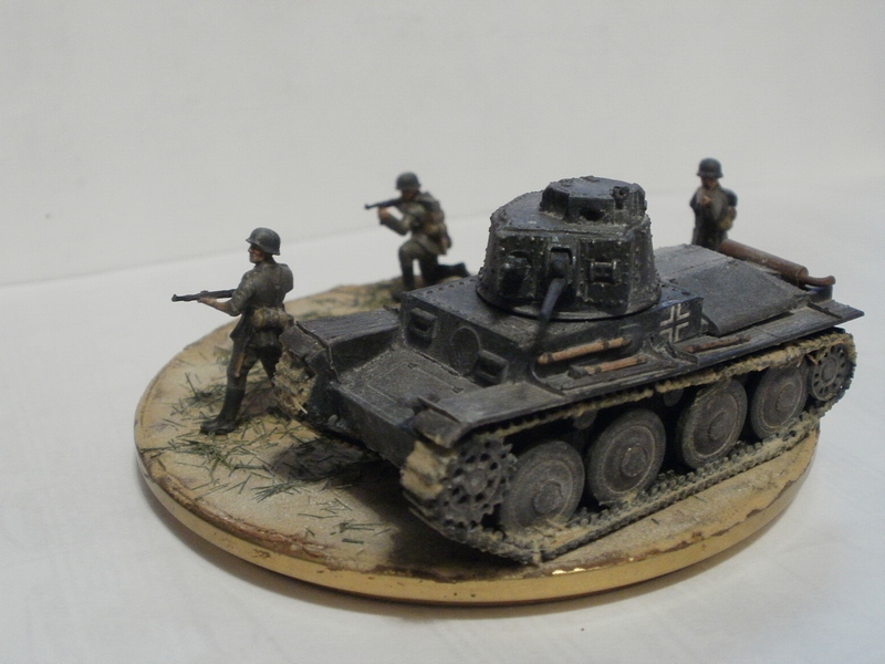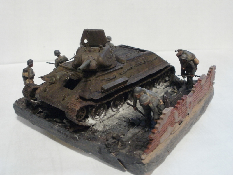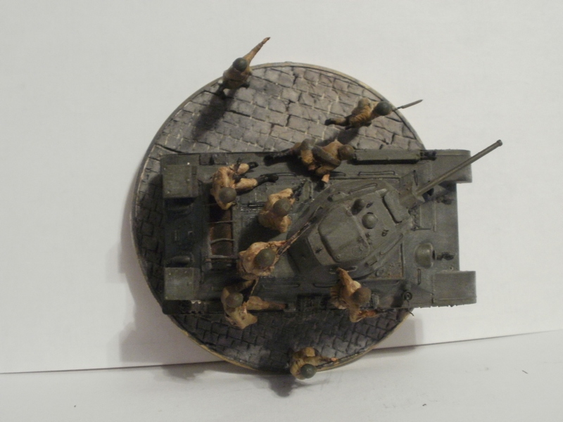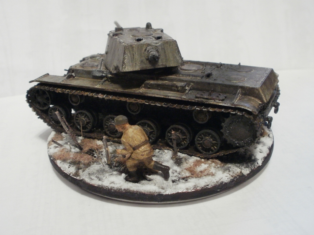Денис Ашхацава Wrote:На мой взгляд фигурка бойца лишняя. Вроде и не противоречит по композиции, но какой-то он тут чужой. Танк на основании самодостаточен.