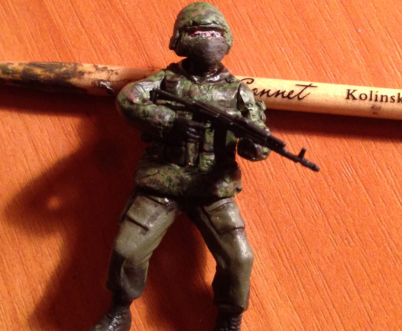 Прошу покритиковать. Перепил звездовских спецназовцев в вежливых людей 1/35. Использовал терракотовую глину и мод. пластилин
