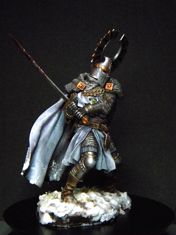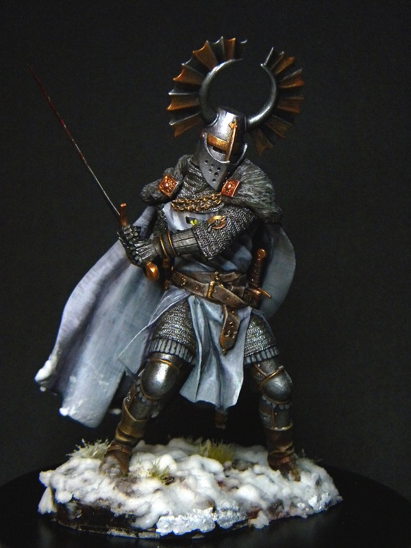 ух ты ж! отличнейший рыцак! На подставке как будто металл непокрашенный из-под "снега" виднеется. Или меня глючит?