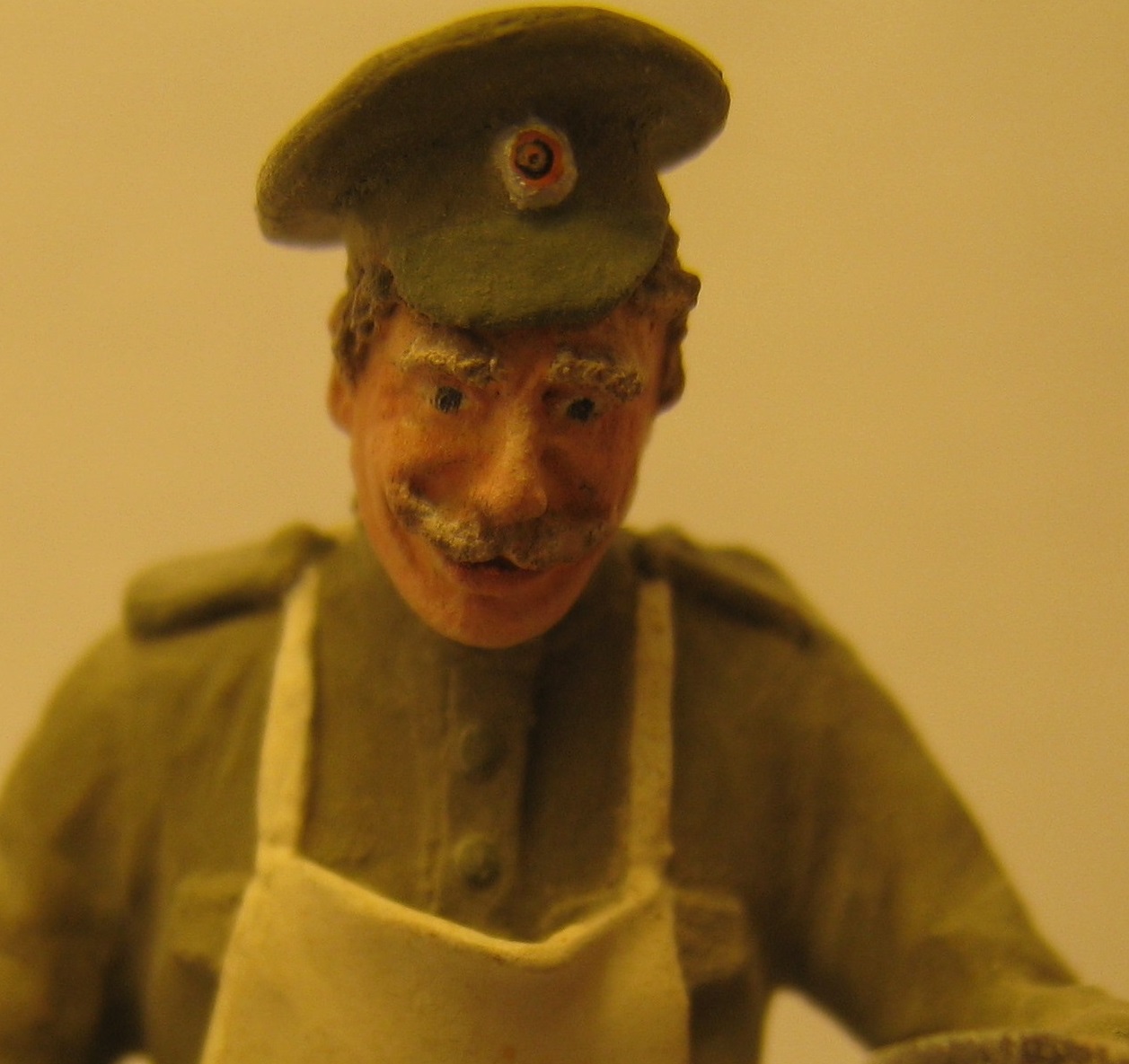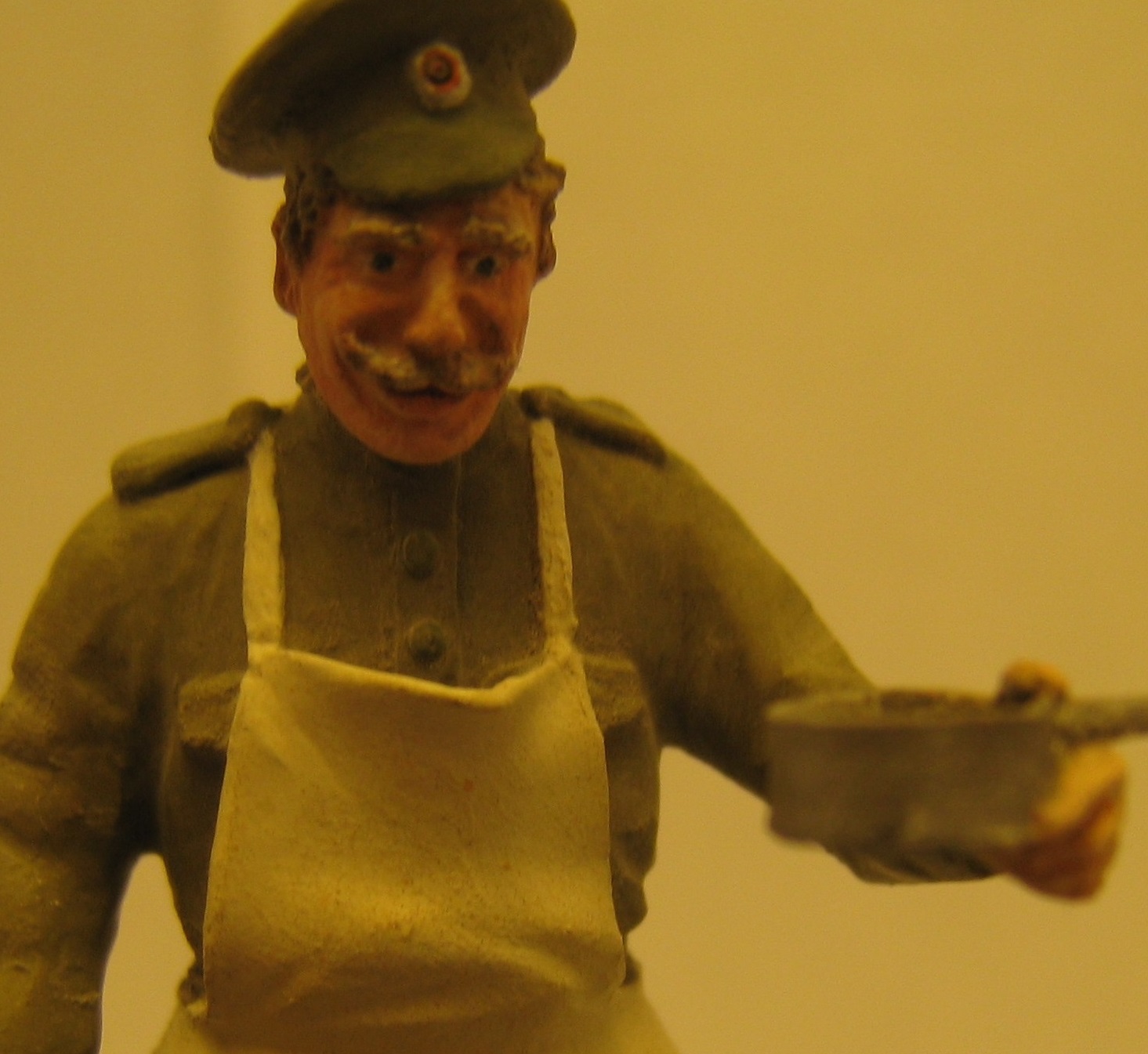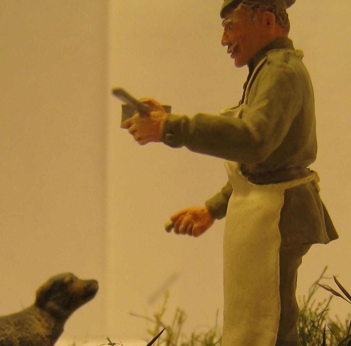 Повар русской армии времён Первой Мировой войны и бездомная собачка.Даже каждый день имея дело со смертью нужно оставаться человеком.Собака из набора американских танкистов в Ираке фирмы Мастербокс, фигурка от Мастерклаб - поменял только положение головы и заменил руку(кстати, рука от тех же американцев ).Трава - окрашенная пакля и немного колосков какой-то травы с улицы.Краски:Акан, Тамия, Звезда, Хоббиколор.