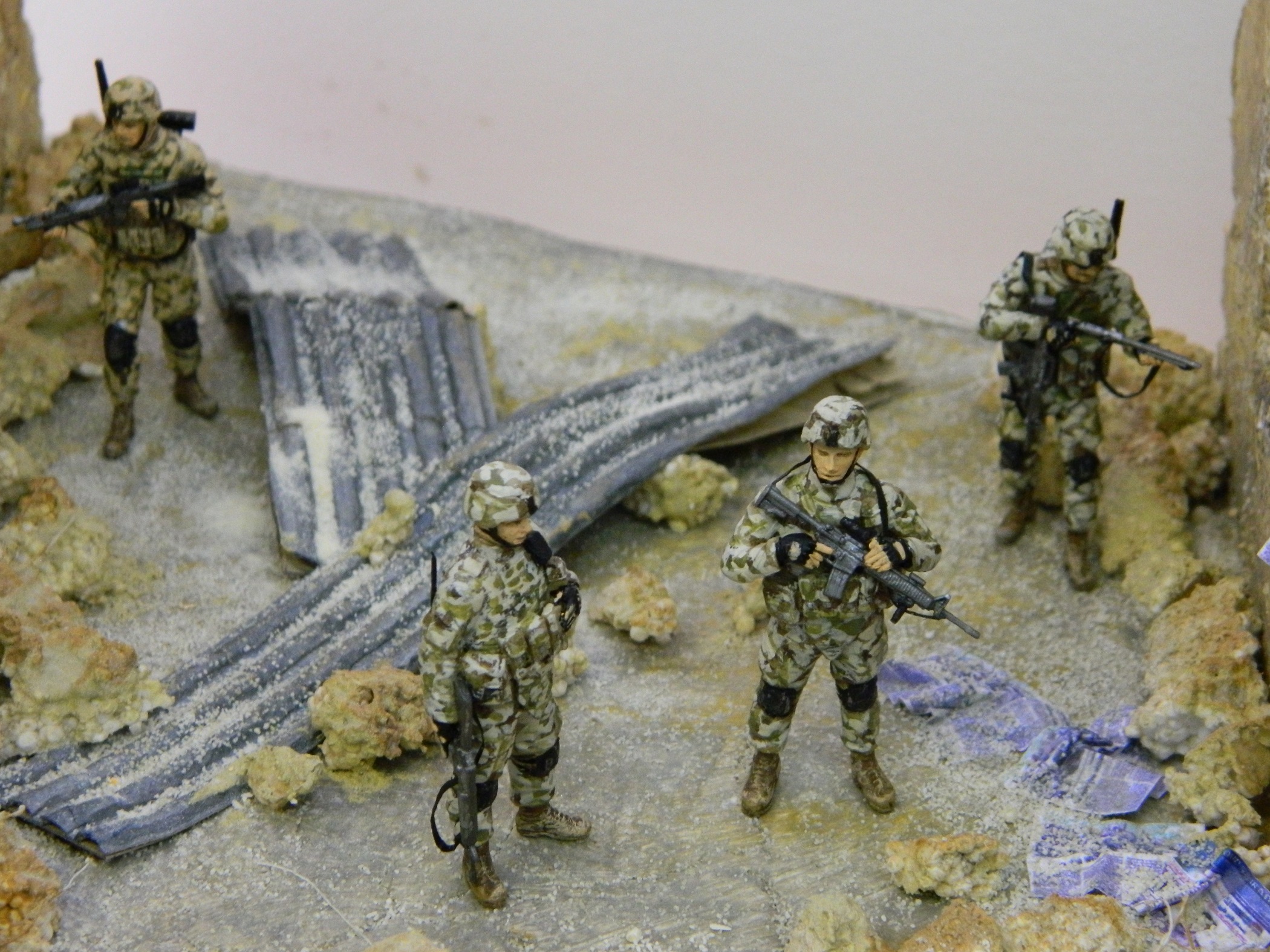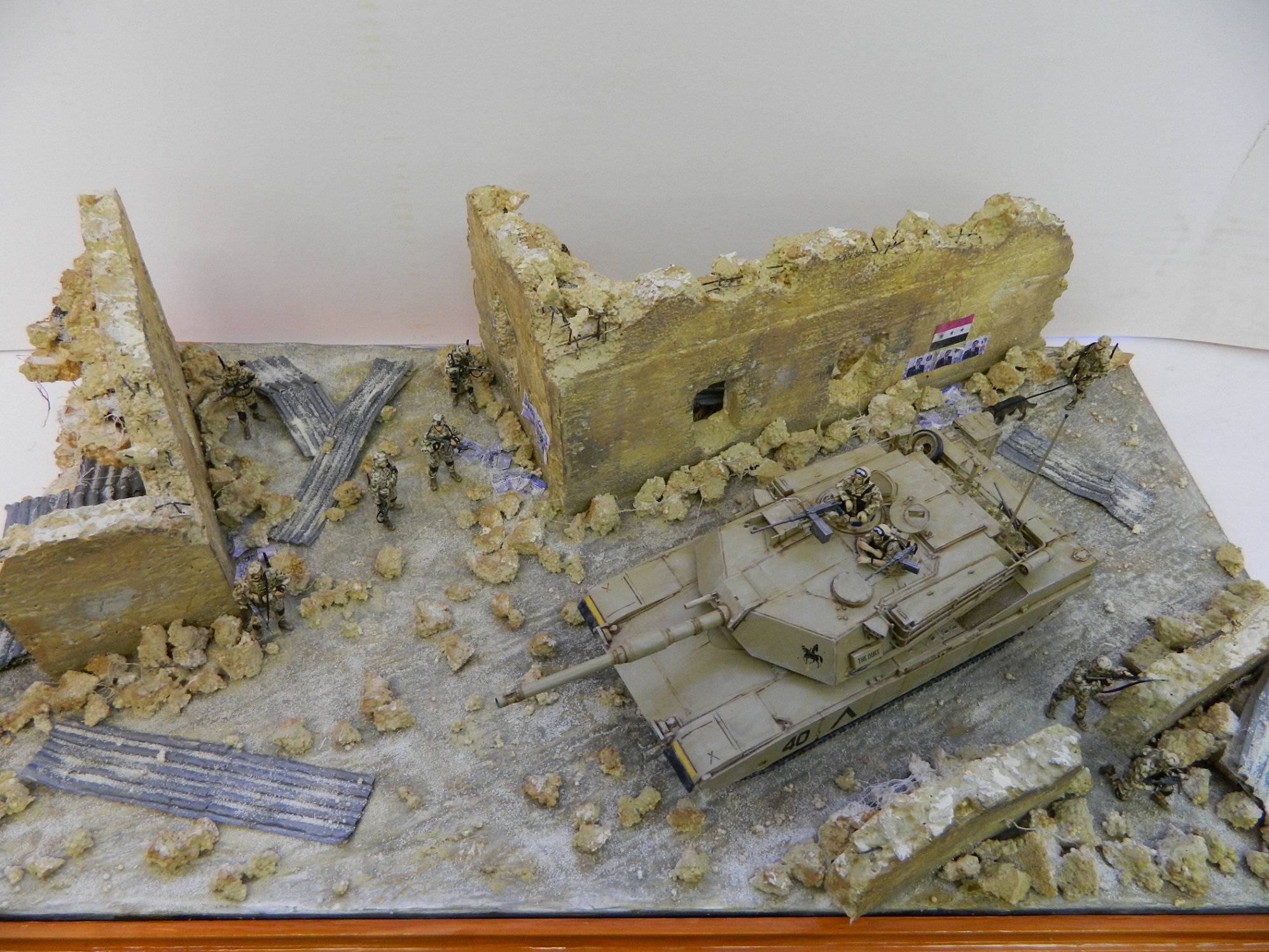 Вдохновился диорамой "Патрулирование окрестностей Багдада"и пока в разработке не завершена моя композиция "Иракская кампания". Фигурки от Мастербокс, танк "Абрамс" от Тамии. Остальные детали подручный материал, пенопласт , покрытый водоэмульсионкой и в некоторых местах пастой Тамия под песок, "шифер" из листов обыкновенной упаковки, разделенной пополам (в центре рельефная вставка есть.)Ну и ко всему прочему, регистрировался по новому Низиб - это Бизин моя работа "Оборона Сталинграда", кто-то уже наверное видел.