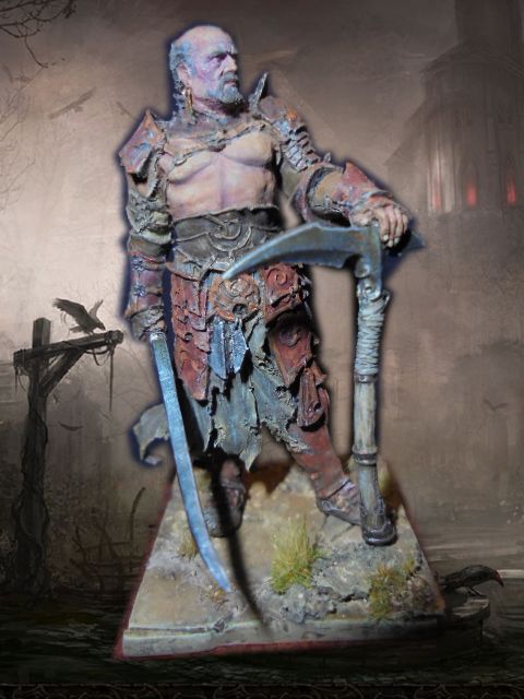 Представляю на ваш суд фигуру интереснейшей фирмы"Nocturne",продолжая свою любимую тему фэнтези.Литье и деталировка на высшем уровне.Но расписывать оказалось сложно,долго разбирался,где какая деталь,фактура,светотени.Но получил огромное удовольствие и ,конечно,опыт.Стражника я сильно"заржавил"и потрепал,мне показалось так.Видел потом роспись этой фигуры с применением техники НММ,тоже получилось неплохо,но я пока так не умею.В росписи использовал акрил Валеджио,масл.краски Мастер класс,пигменты МИГ,немного химии АК.После этой фигурки собираюсь попробовать 28 мм(тоже фэнтези).Приятного просмотра и всем творческих успехов!