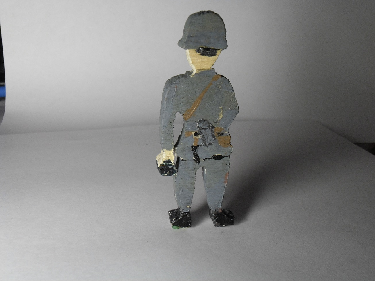 солдат-шутка, 67 мм., выпилен ручным лобзиком из фанеры 8 мм., раскрашен красками Звезда