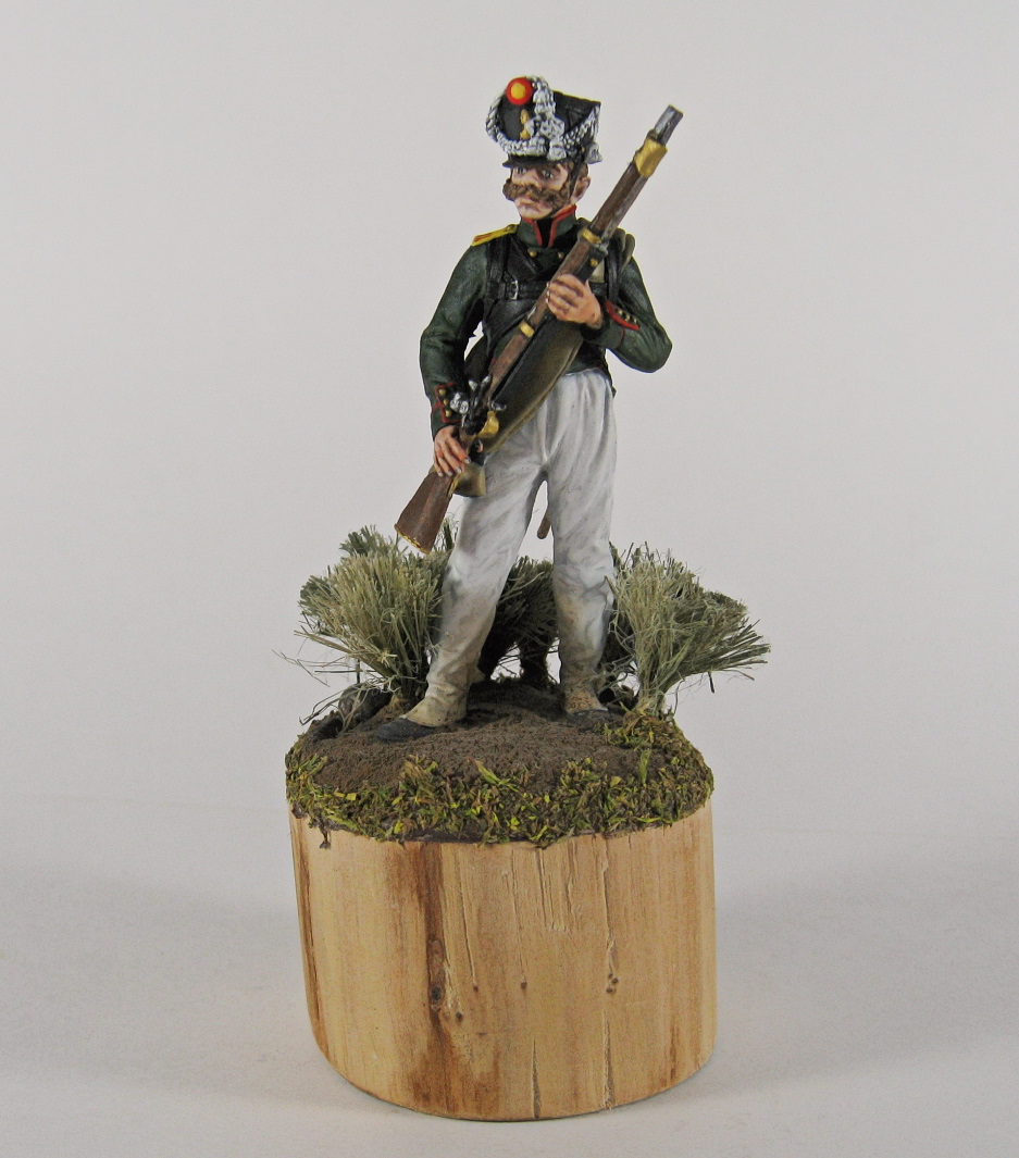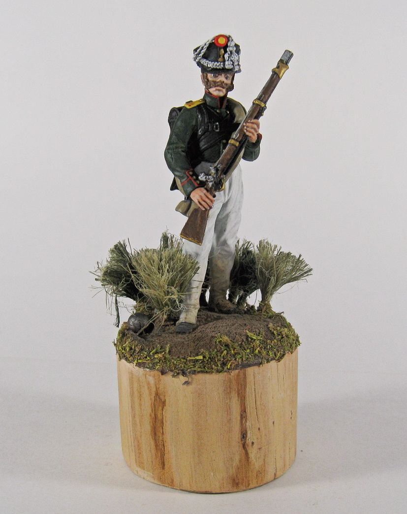 Изображает рядового третьего батальона, егерьской роты (7-9), 1-го егерьского полка. На кампанию 1812 года.