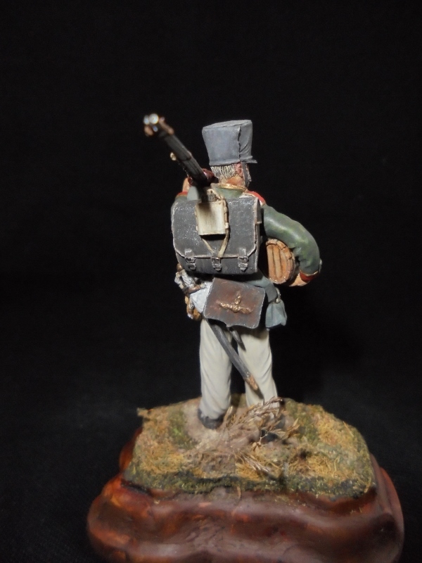 ),перекрасил в серый цвет скатку(она у меня была почему-то розовой) и постарался максимально убрать предательский блеск фигурки.Знаков отличия не рисовал,т.к. не разбираюсь.Если что-то не так,готов выслушать конструктивную критику на будущее.