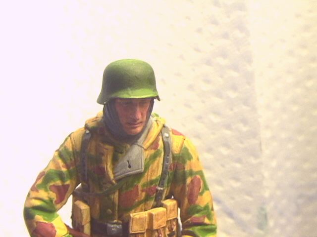 Вы там тени вообще-то выделяли или я просто ничего не вижу? Пятна камуфляжа не высветлены, складки не показаны. Насколько мне известно в 1/16 масштабе это вполне возможно сделать. Хотя Тамиевская фигура это смола и не метал, но все же. Я так понимаю, это еще не законченая работа?