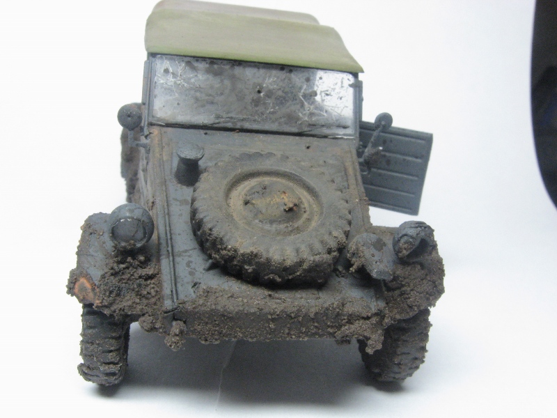 вот.Сделал все,как советовали.На морду еще грязи добавил,пастелью запылил хорошенько.Брызг еще добавил,глянцевым лаком прошелся.Еще с шин немного отколупал грязи.И на стекло нанес грязь,стер ее ватной палочкой для ушей.И попытался сделать следы от дворников на стекле,но на фото их почти не видно.