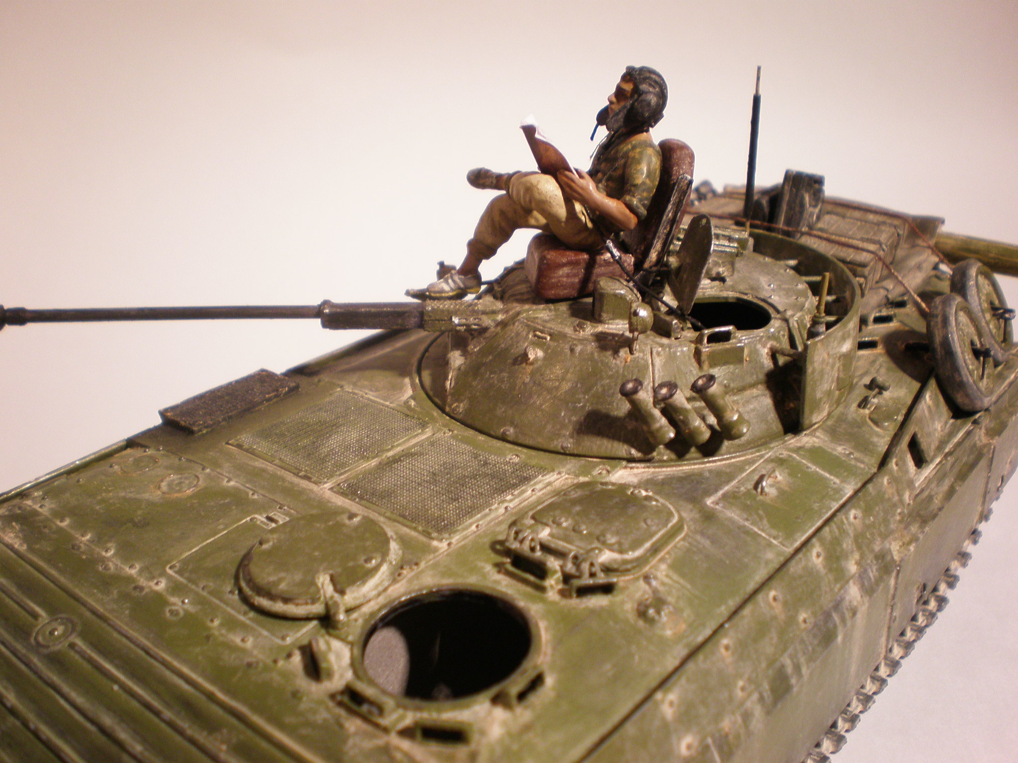 Очень хорошая работа для пробы пера в 35-масштабе. К неточностям, указанным в предыдущем посте, можно добавить излишне зеленоватый оттенок бревна на корме машины (в сухом Афганском климате плесневеть ему не с чего); БМП обычно имела довольно дымный выхлоп, оставлявший хорошо заметные пятна сажи на правом борту (на модели это выглядит больше как пятно грязи, можно закоптить это место посильнее); журнал в руках бойца зеркально перевернут (хорошо заметный логотип "Огонька" советских времен находился на первой, а не на последней странице обложки!); отсутствует бортовой номер машины.