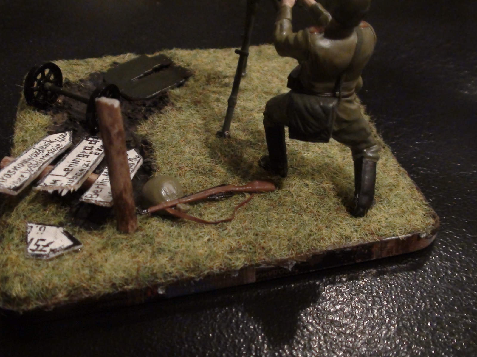 Это моя первая виньетка, поэтому с удовольствием выслушаю критику и советы более опытных коллег. Пулемет ДШК и пехотинец - "Звезда". Основание гипс, трава от "Звезды". Окрашено акрилом "Звезда" и "Тamya". Указатели самодельные, из палочки от мороженного.