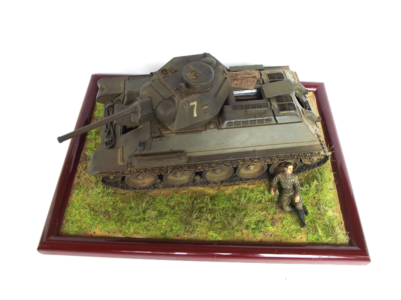 Вот представляю на ваш суд свою вторую работу, здесь использовались танк от Макет,ТАМИЯ,Звезда, фигуры от ICM. Роспись фигуры, это моя первая попытка. Всё окрашено акрилом ЗВЕЗДА.