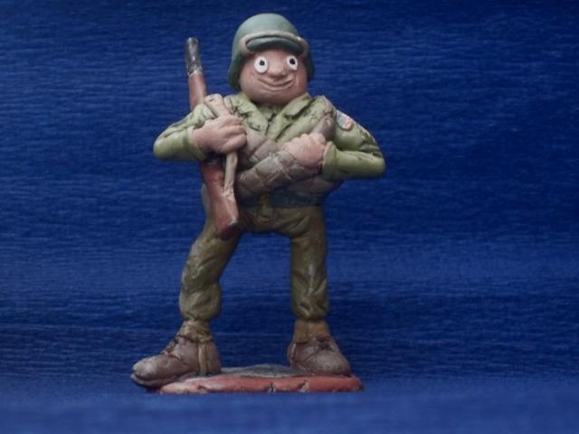 GSA-1974, Судьба янки сложна.Сделал подставку и понял, что надо перекрашивать лицо.И ещё "помог" коллега на работе (я сейчас творю в основном на дежурствах):он нечаянно смёл со стола ноутбук и так завопил, что я от неожиданности облил янки красной краской, которую неосмотрительно открывал над фигуркой.Буду перекрашивать.