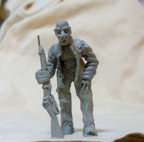 Вот ещё "междудел", сваял вчера на дежурстве. Гражданская война в США, сражение при Чанселорсвилле. Солдат-северянин из корпуса Ховарда,дивизии Девенса,бригады фон Джилдзи. Внезапная атака Джексона "Каменная Стена" обратила бригаду в паническое бегство. Этот янки только и успел накинуть китель, впрыгнуть в ботинки и схватить ружьё. В бегстве порвал штаны и ботинок. Умышленно карикатурная фигурка. (Сейчас смотрю и понимаю: на будущее головы надо делать больше, так прикольней).Масштаб всё тот же: плюс/минус 75.