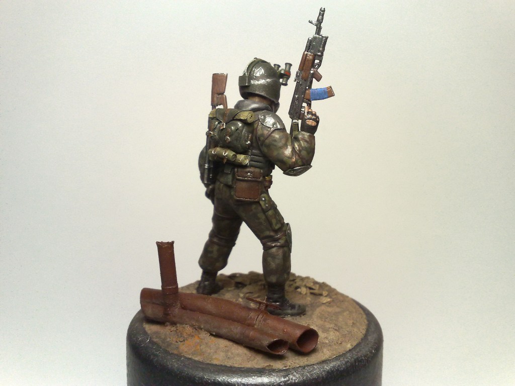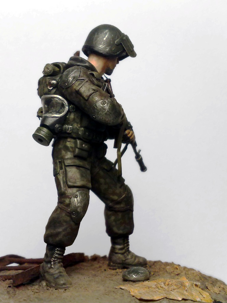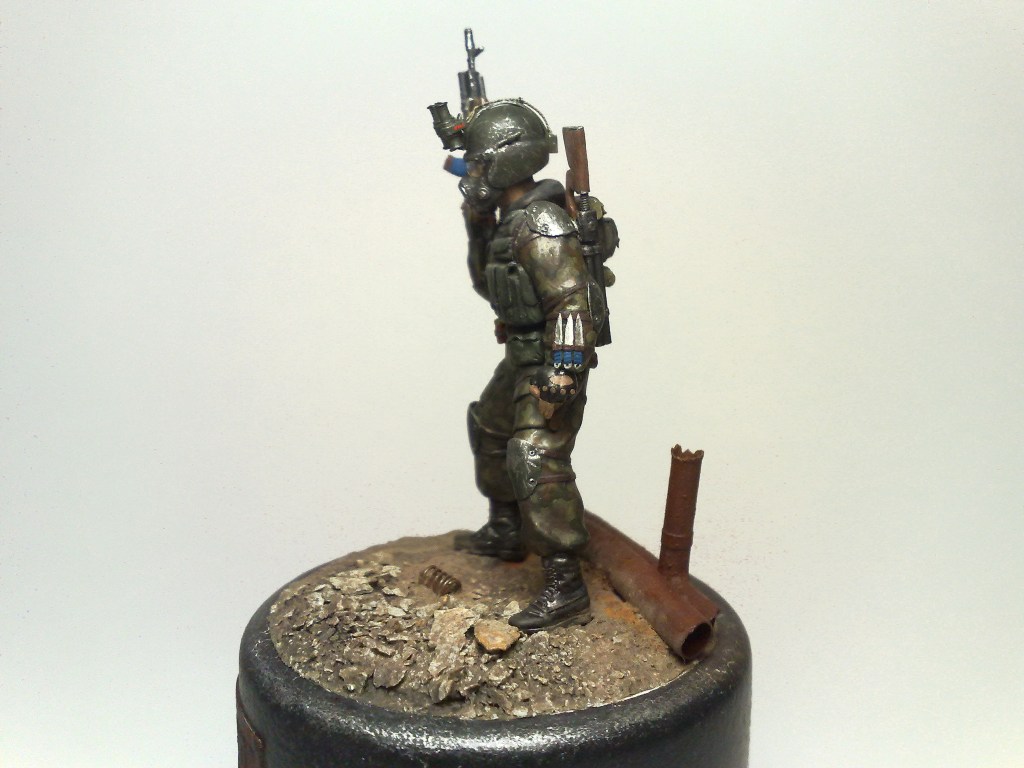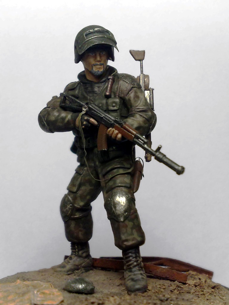 При создании использовались 2 фигуры из набора "Звезды" Российский спецназ №1 1:35 - боец с автоматом с подствольником и голова от гранатометчика.