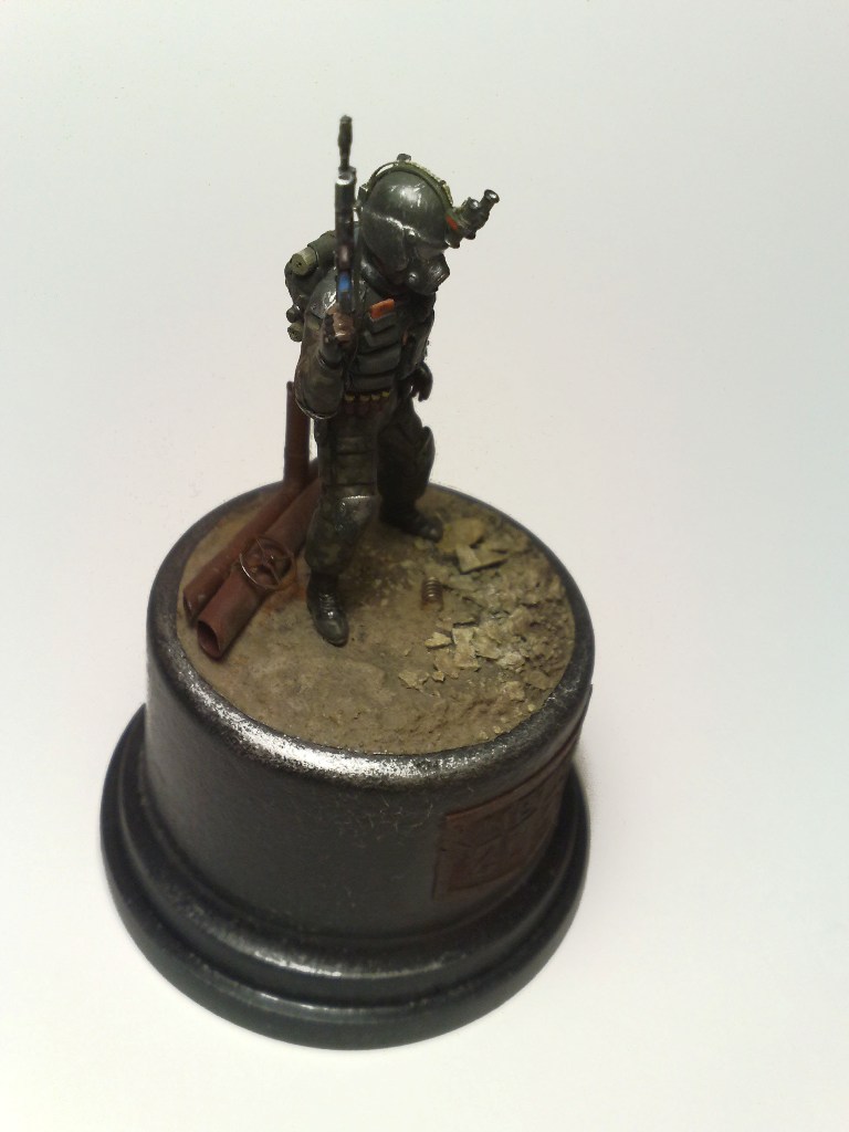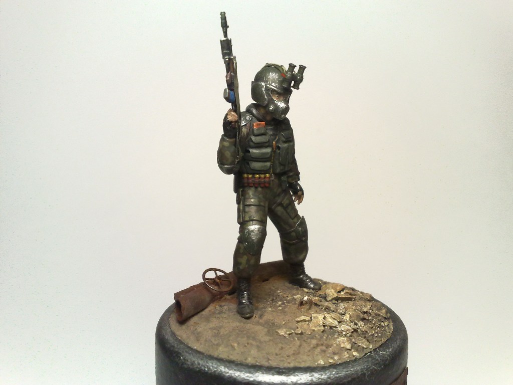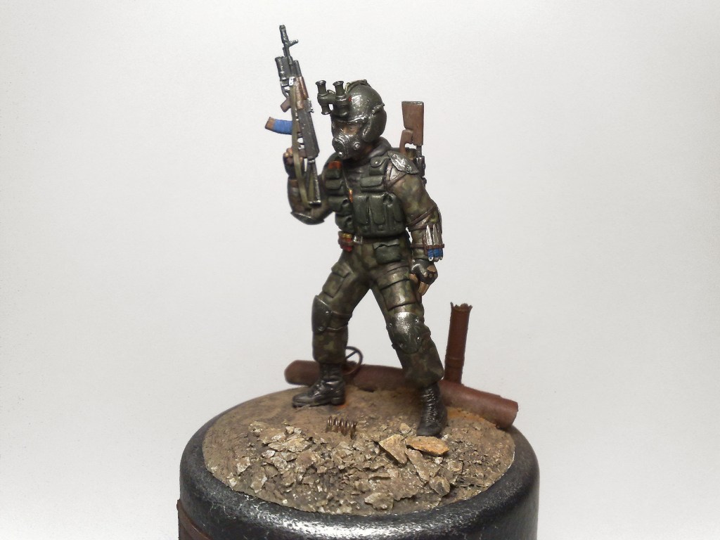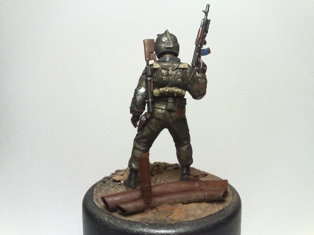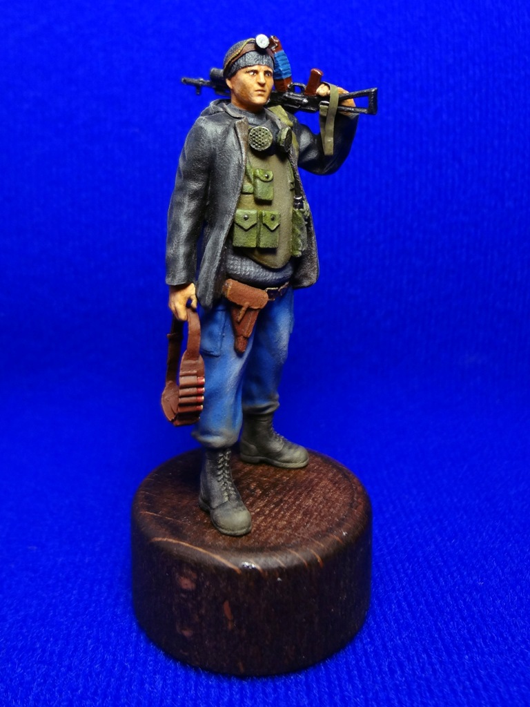 При создании использовались 2 фигуры из набора "Звезды" Российский спецназ №1 1:35 - боец с автоматом с подствольником и голова от гранатометчика.