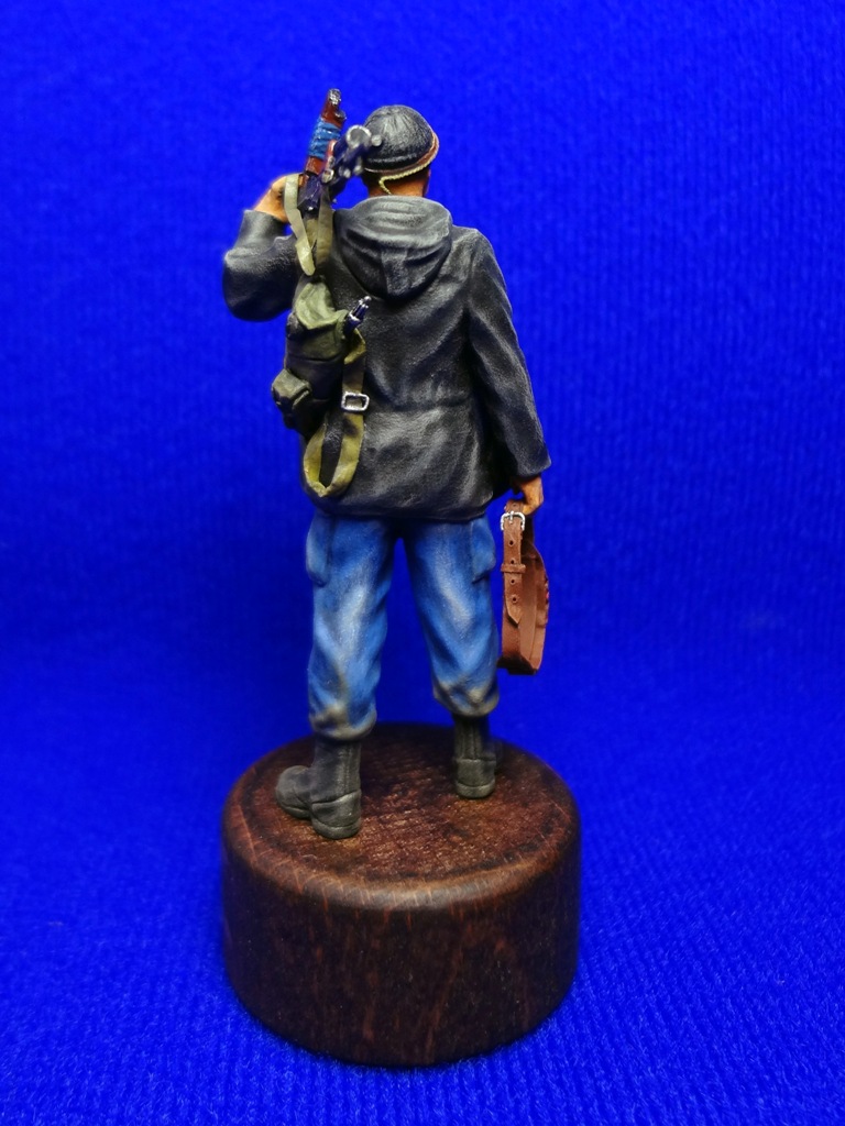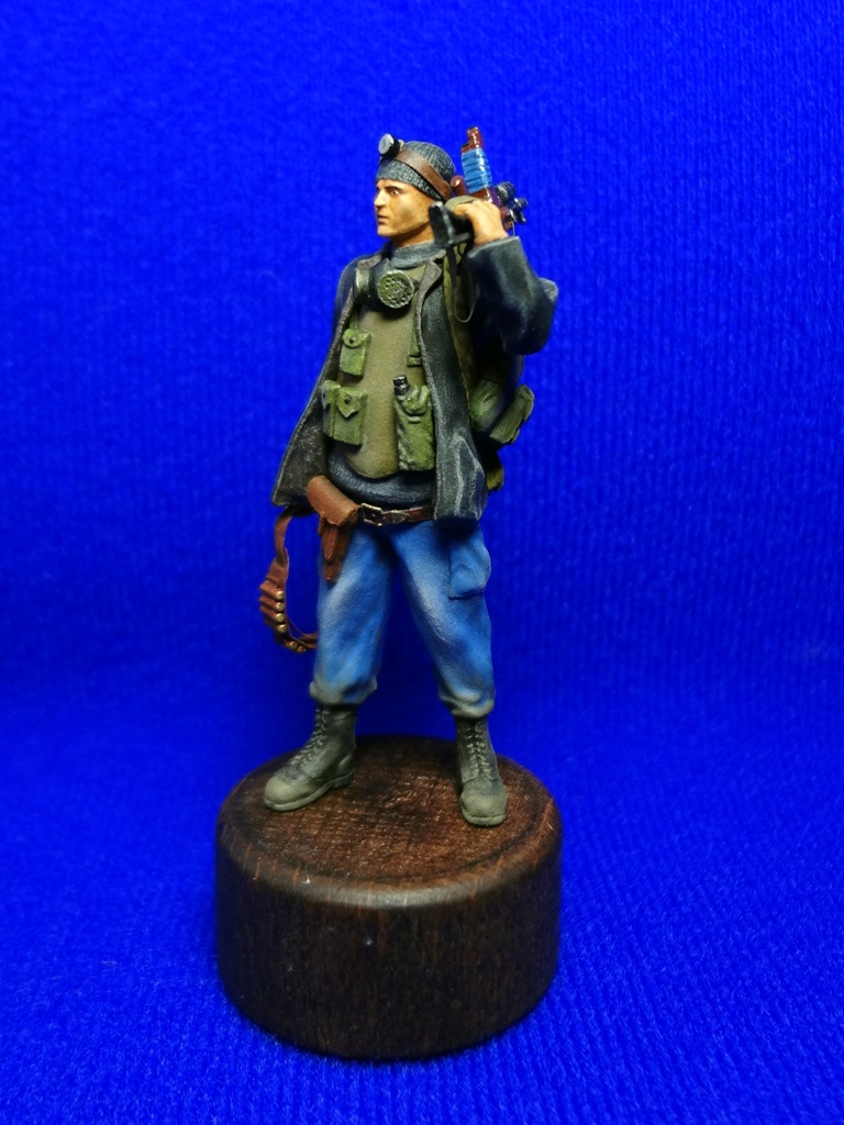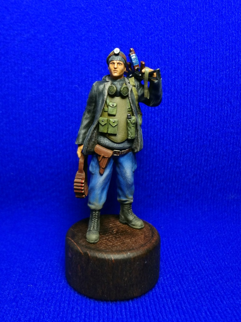 Вообщем описывать особо нечего, набор Афганцев от Звезды очень порадовал качеством. Изменил положение левой руки, всунул вместо бинокля автомат, в левую вместо автомата - патронташ. Вместо каски слепил шапку с фонарем. Повесил респиратор, рюкзак и кабуру.