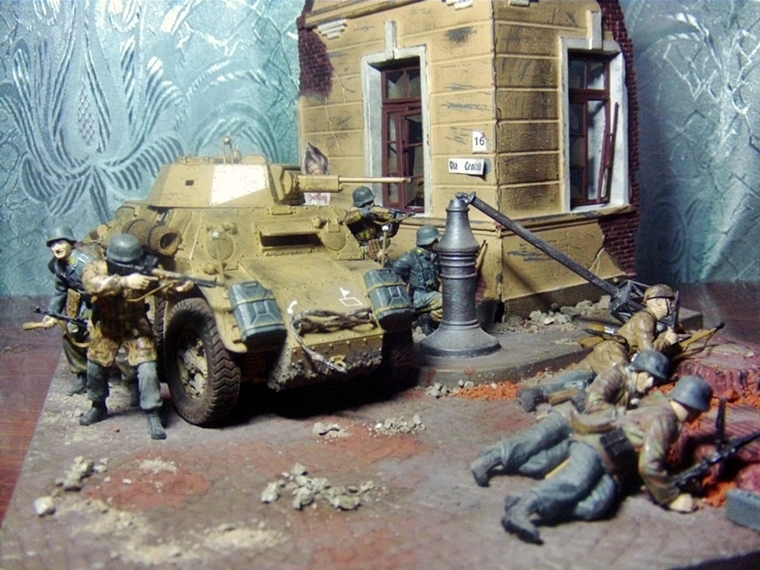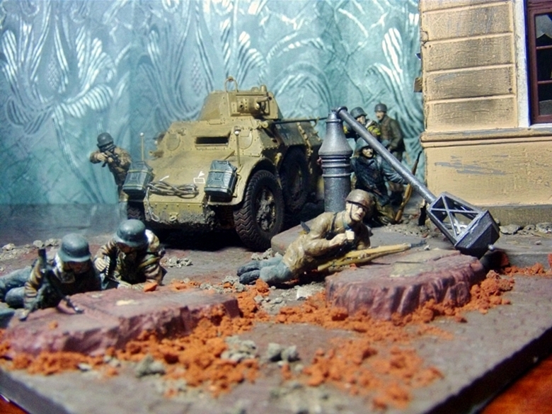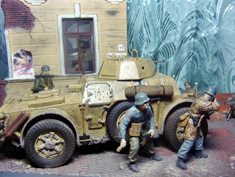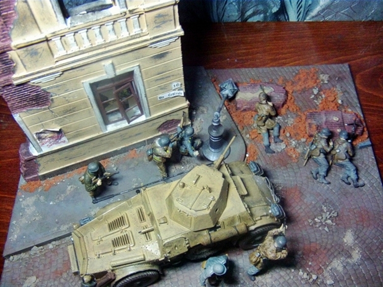 Всем привет. Выставляю на ваш суд свою диораму в 1/35. Делал с исторической привязкой бои в Италии 4-ой парашютной дивизии. Бронеавтомобиль от фирмы Italeri, фигуры от фирмы Master Box и Dragon основание MiniArt. Красилось все акрилом, пачкалось пастелью, руины раскрошенный кирпич.За все комментарии заранее спасибо.