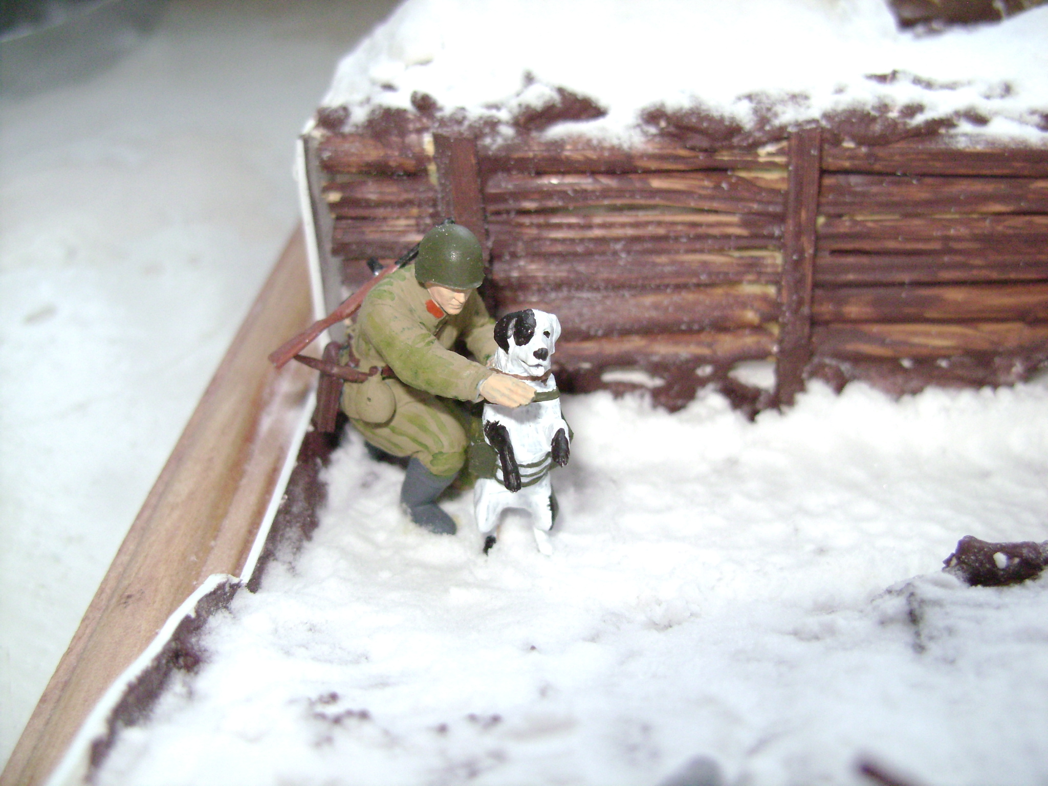 Фигурки Звезда. Краска Звезда. Противотанковый ёж - Master Box. Снег - сода. Стенки окопа (траншея) - прутики веника. Линейки.