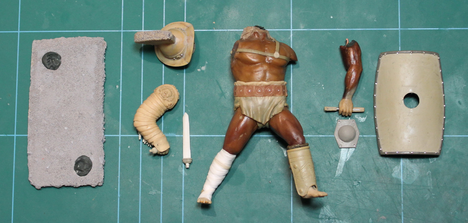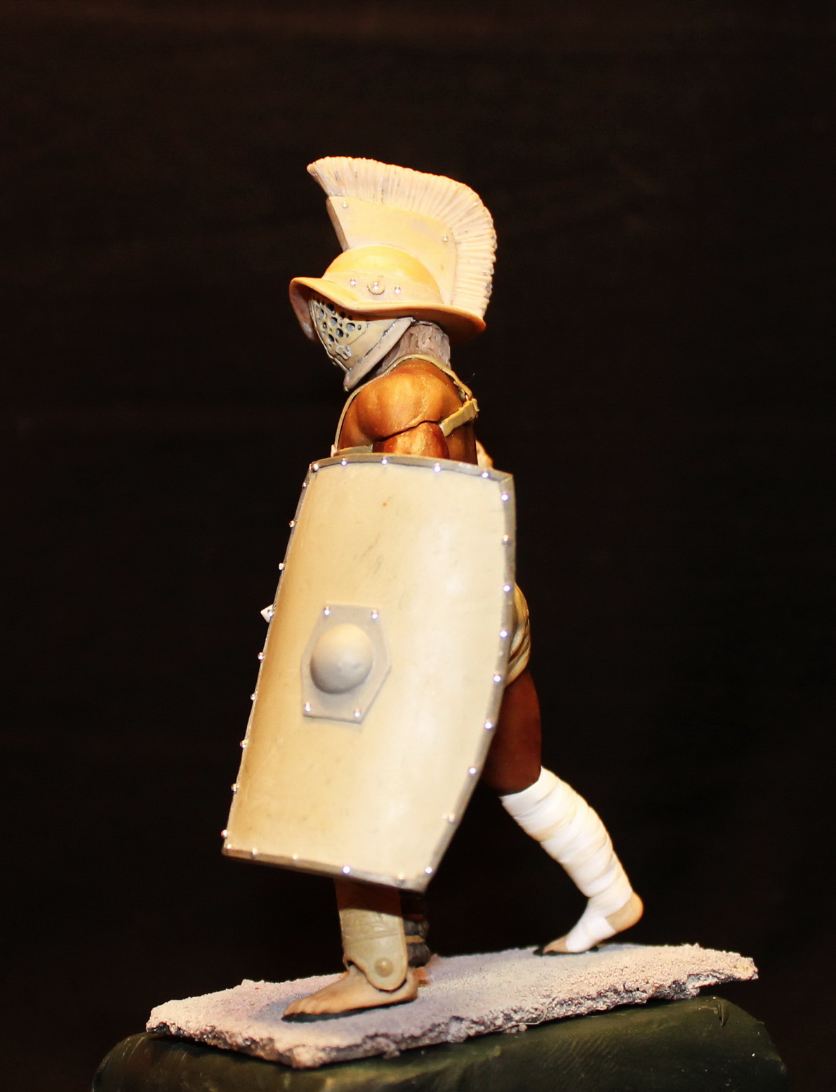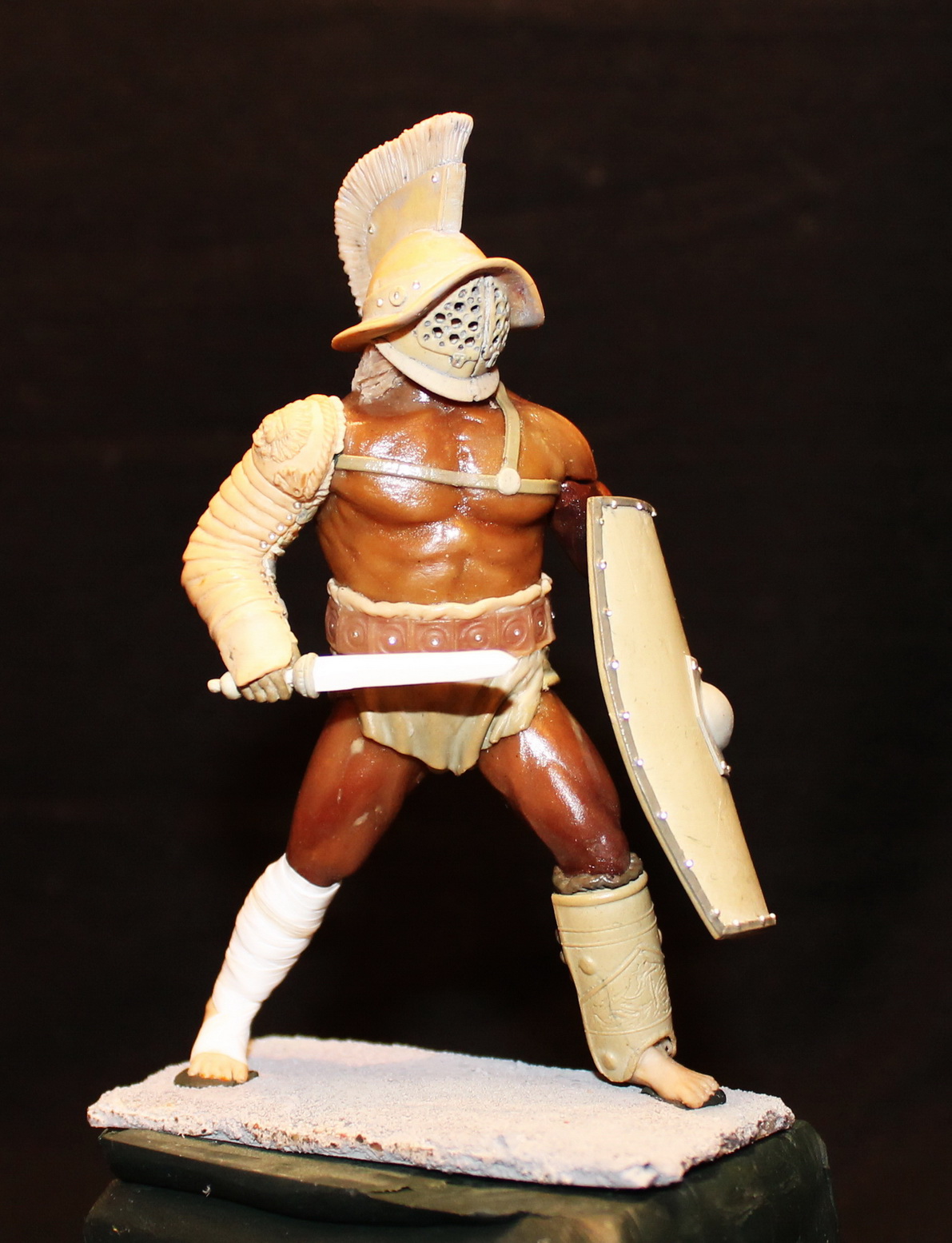 Хорош,шлем,наплечник,вообще отлично,да и сам он вполне правдиво сложен,где то читал что гладиаторов сажали на высоко калорийную диету,примерно были похожи на боксёров супер тяжей или если не добирали мыжцой то жиром закрывали,представляя собой достаточно рыхлых и массивных субъектов,делалась это якобы для того что бы растянуть бой по времени и обезопасить гладиаторов от тяжёлых ран той же жировой прослойкой.