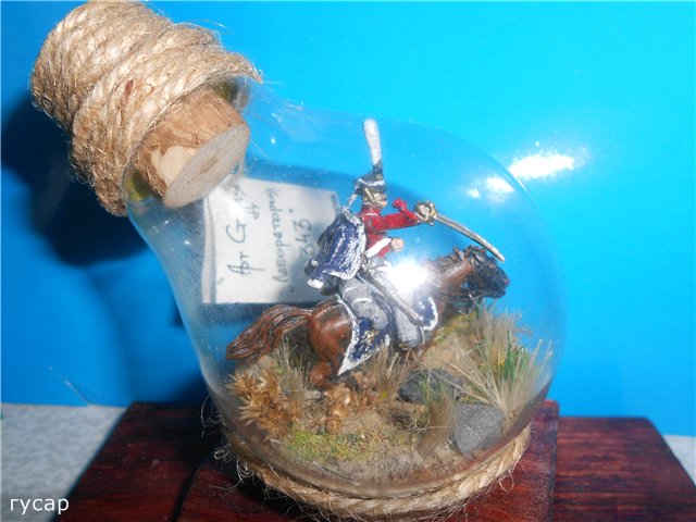 Добрый день. Решился показать несколько своих работ, в 72-м масштабе. Фигурки от "Звезды", красил акрилом, трава - сантехнический лен, настоящая трава, песок, лампа накаливания диаметром 6,5см.